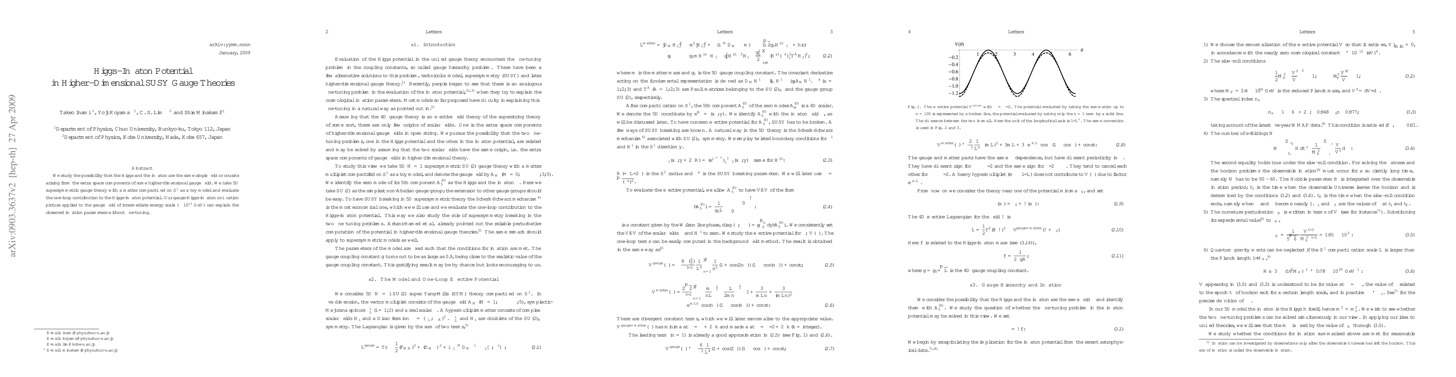 This paper explores the unification of the Higgs and inflaton fields in higher-dimensional supersymmetric gauge theories, proposing a 5D model where they emerge from extra space components. The study finds that this framework can naturally explain observed inflation parameters without requiring fine-tuning.