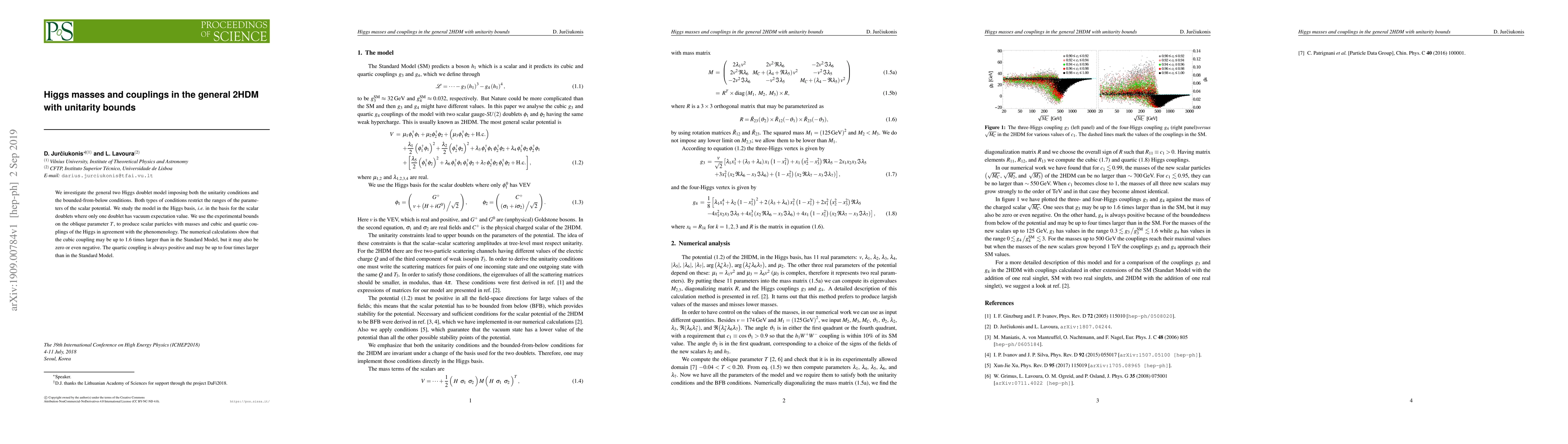 This research examines the general Two Higgs Doublet Model (2HDM) under unitarity and bounded-from-below conditions, restricting parameter ranges. Using experimental bounds on oblique parameter T, it identifies scalar particle masses and Higgs cubic/quartic couplings consistent with phenomenology. The study reveals that cubic couplings can be up to 1.6 times larger than in the Standard Model (potentially zero or negative), while quartic couplings are always positive and can be up to four times larger.