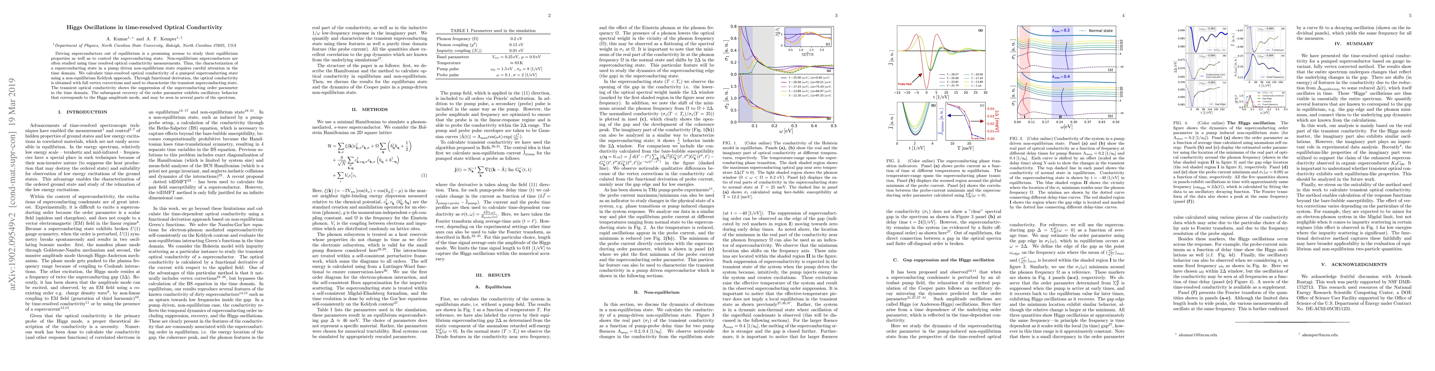 This paper investigates the time-resolved optical conductivity of a superconductor driven out of equilibrium, revealing the suppression and subsequent oscillatory recovery of the superconducting order parameter, which corresponds to the Higgs amplitude mode. The study employs a non-equilibrium Keldysh approach to characterize these transient phenomena.