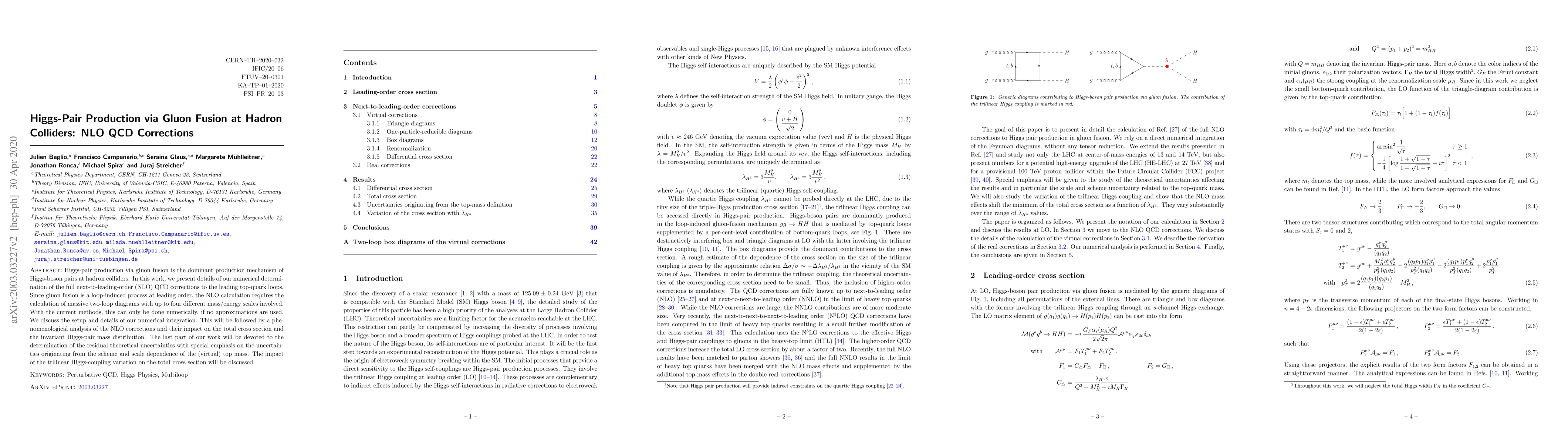 Higgs-pair production via gluon fusion is the dominant production mechanism of Higgs-boson pairs at hadron colliders. In this work, we present details of our numerical determination of the full next-to-leading-order (NLO) QCD corrections to the leading top-quark loops. Since gluon fusion is a loop-induced process at leading order, the NLO calculation requires the calculation of massive two-loop diagrams with up to four different mass/energy scales involved. With the current methods, this can only be done numerically, if no approximations are used. We discuss the setup and details of our numerical integration. This will be followed by a phenomenological analysis of the NLO corrections and their impact on the total cross section and the invariant Higgs-pair mass distribution. The last part of our work will be devoted to the determination of the residual theoretical uncertainties with special emphasis on the uncertainties originating from the scheme and scale dependence of the (virtual) top mass. The impact of the trilinear Higgs-coupling variation on the total cross section will be discussed.