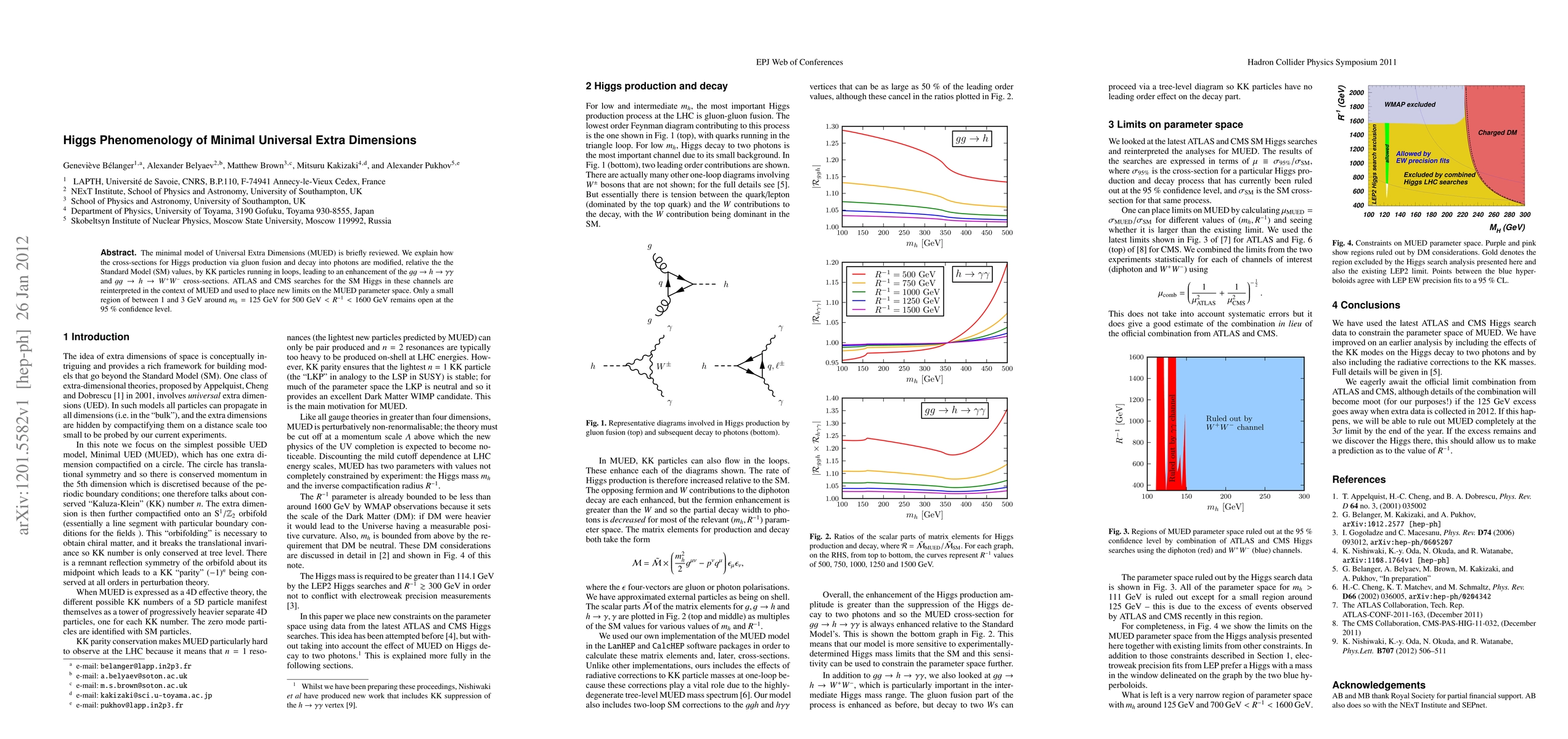 This paper reviews the minimal model of Universal Extra Dimensions (MUED) and examines how Kaluza-Klein (KK) particles affect Higgs production and decay. It finds that KK particles enhance certain cross-sections, leading to new limits on MUED parameters, leaving only a small parameter space open around mh = 125 GeV.