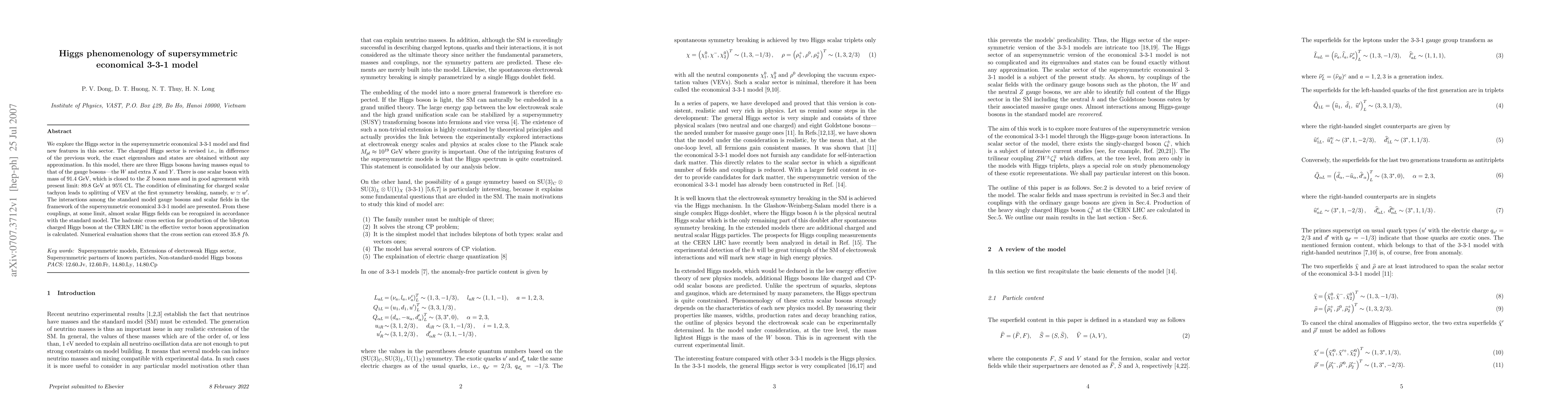 This paper investigates the Higgs sector in the supersymmetric economical 3-3-1 model, revealing new features and exact eigenvalues without approximations. It identifies three Higgs bosons with masses similar to the gauge bosons, including a scalar boson close to the Z boson mass, and calculates potential production cross sections for the bilepton charged Higgs at the LHC.