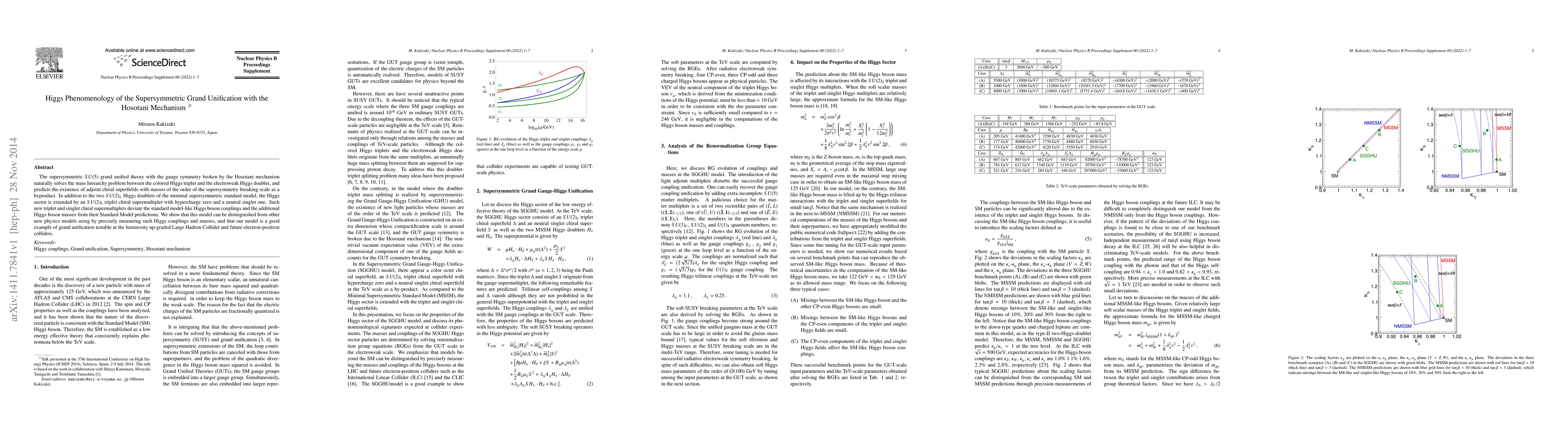 This paper explores a supersymmetric SU(5) grand unified theory utilizing the Hosotani mechanism to address the mass hierarchy problem and extends the Higgs sector with new chiral supermultiplets. It predicts deviations in Higgs couplings and masses, offering potential experimental distinctions from other models at future colliders.