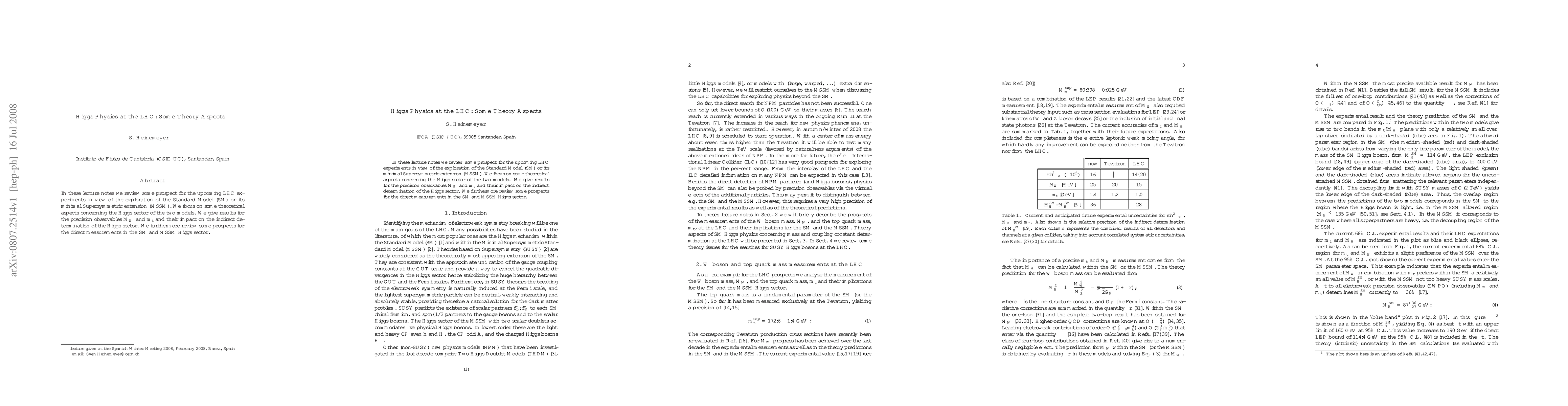 In these lecture notes we review some prospect for the upcoming LHC experiments in view of the exploration of the Standard Model (SM) or its minimal Supersymmetric extension (MSSM). We focus on some theoretical aspects concerning the Higgs sector of the two models. We give results for the precision observables M_W and m_t and their impact on the indirect determination of the Higgs sector. We furthermore review some prospects for the direct measurements in the SM and MSSM Higgs sector.