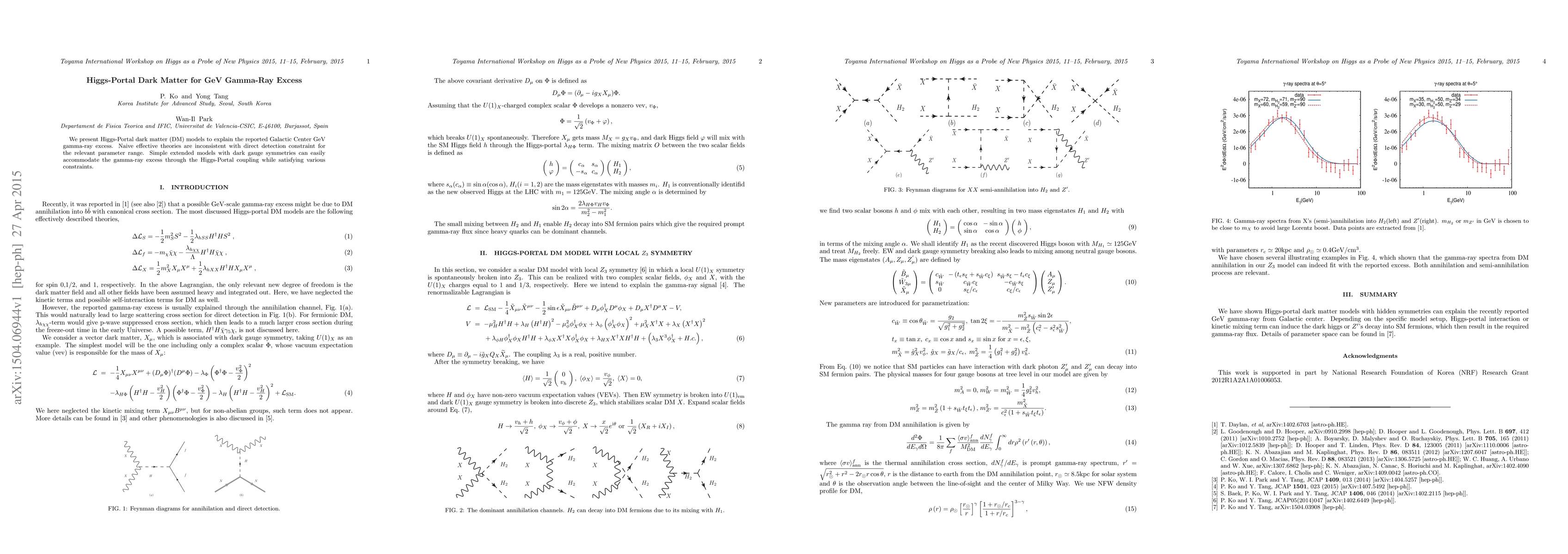 This paper proposes Higgs-Portal dark matter models to explain the GeV gamma-ray excess observed in the Galactic Center, addressing inconsistencies with direct detection constraints by introducing dark gauge symmetries that maintain compatibility with observational limits.