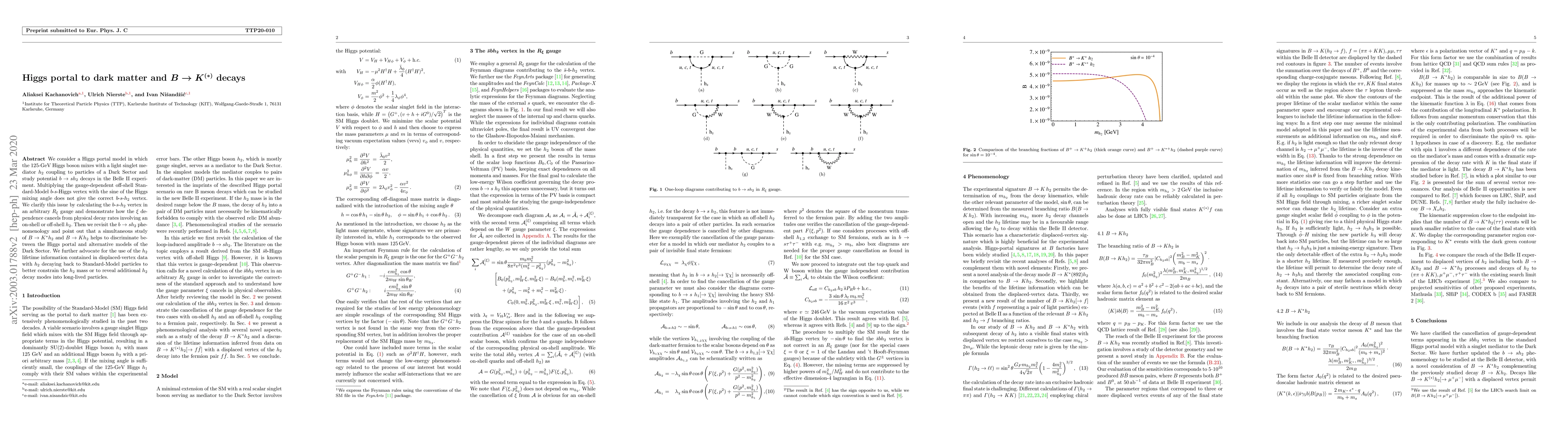 We consider a Higgs portal model in which the 125-GeV Higgs boson mixes with a light singlet mediator $h_2$ coupling to particles of a Dark Sector and study potential $b\to s h_2$ decays in the Belle II experiment. Multiplying the gauge-dependent off-shell Standard-Model $b$-$s$-Higgs vertex with the sine of the Higgs mixing angle does not give the correct $b$-$s$-$h_2$ vertex. We clarify this issue by calculating the $b$-$s$-$h_2$ vertex in an arbitrary $R_\xi$ gauge and demonstrate how the $\xi$ dependence cancels from physical decay rates involving an on-shell or off-shell $h_2$. Then we revisit the $b\to s h_2$ phenomenology and point out that a simultaneous study of $B\to K^* h_2$ and $B\to K h_2$ helps to discriminate between the Higgs portal and alternative models of the Dark Sector. We further advocate for the use of the $h_2$ lifetime information contained in displaced-vertex data with $h_2$ decaying back to Standard-Model particles to better constrain the $h_2$ mass or to reveal additional $h_2$ decay modes into long-lived particles.