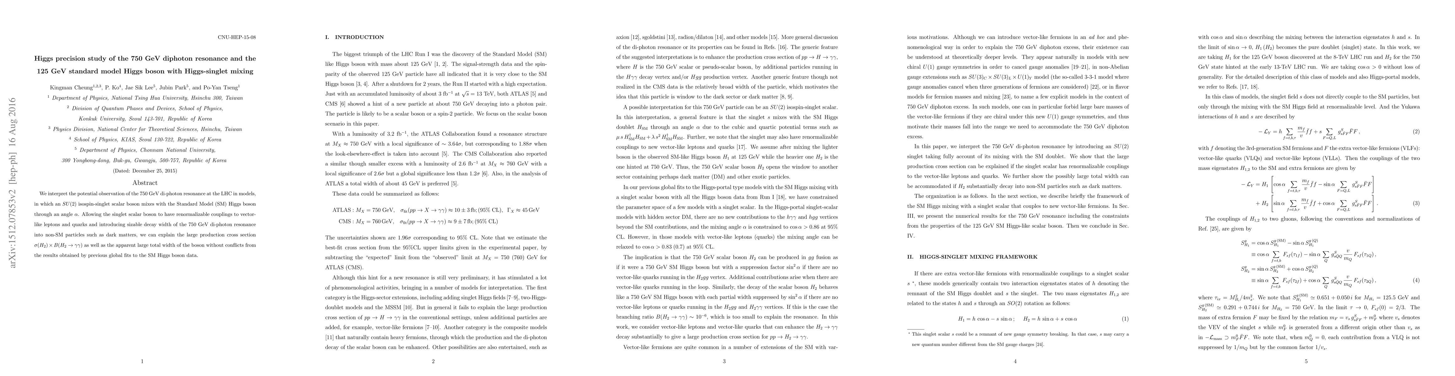 This paper explores the potential existence of a 750 GeV diphoton resonance at the LHC, interpreting it within a model where an $SU(2)$ singlet scalar mixes with the Standard Model Higgs boson. The study allows for the singlet scalar's couplings to vector-like leptons and quarks, and its decay into non-SM particles, explaining the observed large production cross section and total width without contradicting previous analyses of the 125 GeV SM Higgs boson.