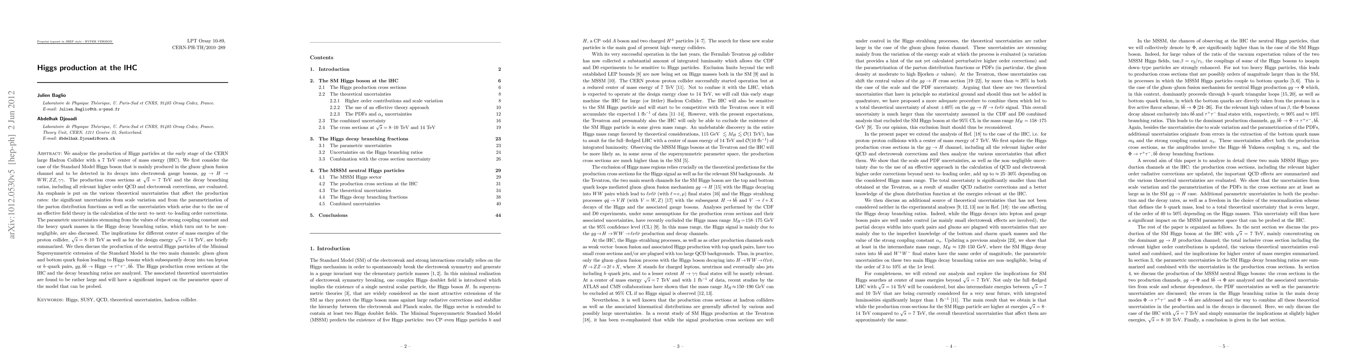 This paper evaluates the production and decay of Higgs particles at the LHC with 7 TeV center-of-mass energy, focusing on the Standard Model and Minimal Supersymmetric extensions. It assesses theoretical uncertainties, including scale variation and parton distribution functions, and discusses implications for higher energies.