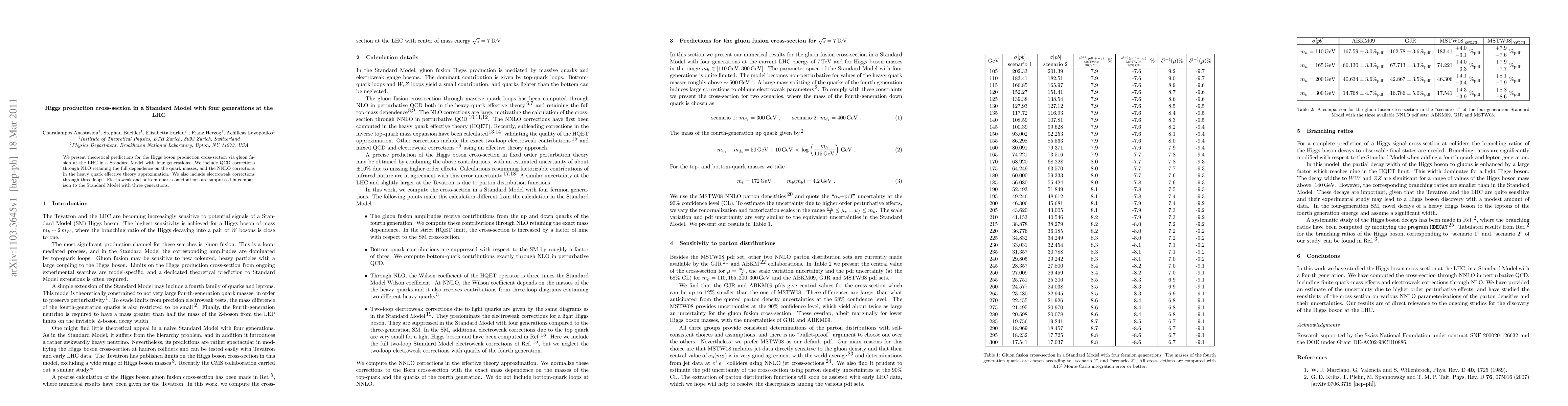 We present theoretical predictions for the Higgs boson production cross-section via gluon fusion at the LHC in a Standard Model with four generations. We include QCD corrections through NLO retaining the full dependence on the quark masses, and the NNLO corrections in the heavy quark effective theory approximation. We also include electroweak corrections through three loops. Electroweak and bottom-quark contributions are suppressed in comparison to the Standard Model with three generations.