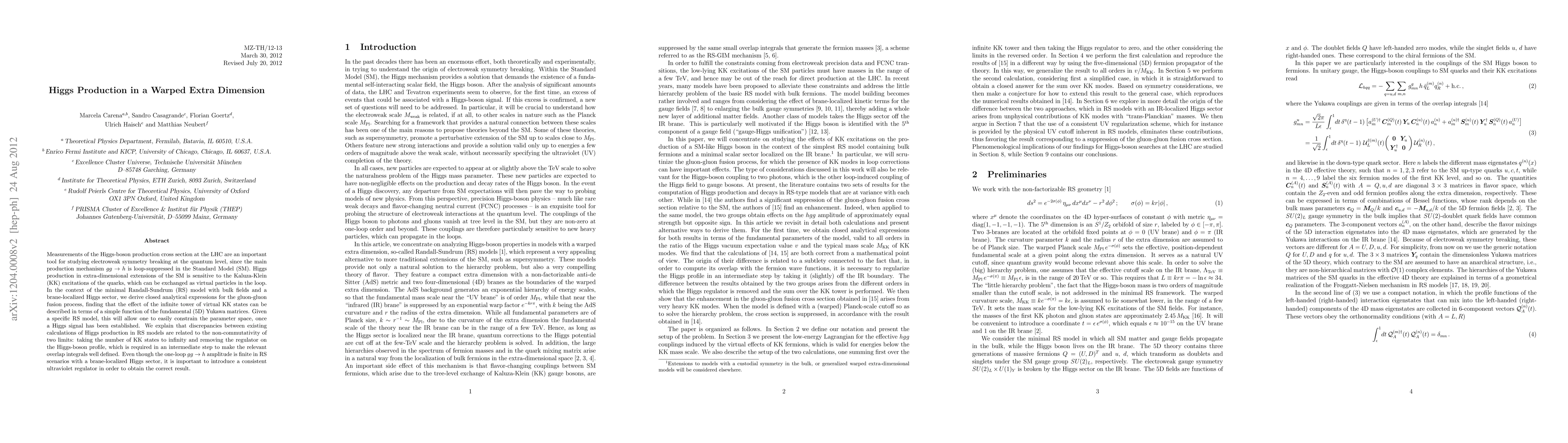 This paper derives analytical expressions for Higgs production via gluon fusion in the context of the minimal Randall-Sundrum model, showing how the Kaluza-Klein excitations of quarks affect the process. It resolves discrepancies in previous calculations by addressing the non-commutativity of certain limits and emphasizes the necessity of a consistent ultraviolet regulator.