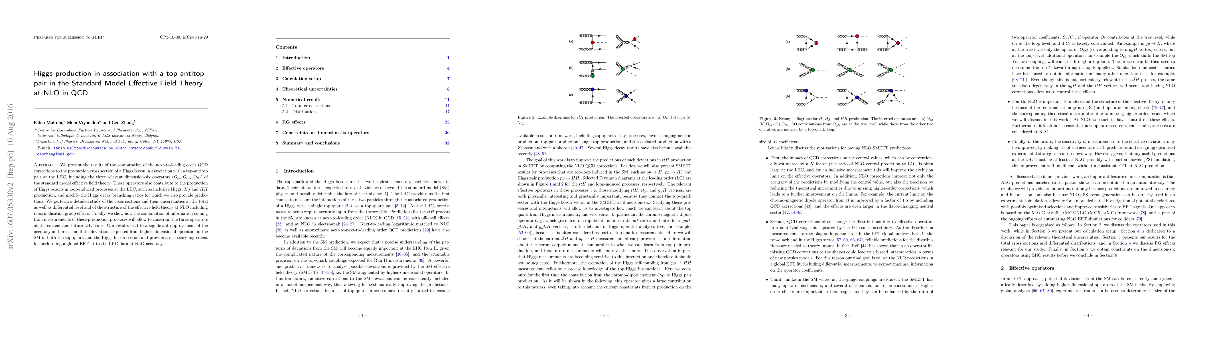 We present the results of the computation of the next-to-leading order QCD corrections to the production cross section of a Higgs boson in association with a top-antitop pair at the LHC, including the three relevant dimension-six operators ($O_{t \varphi }, O_{\varphi G}, O_{tG}$) of the standard model effective field theory. These operators also contribute to the production of Higgs bosons in loop-induced processes at the LHC, such as inclusive Higgs, $Hj$ and $HH$ production, and modify the Higgs decay branching ratios for which we also provide predictions. We perform a detailed study of the cross sections and their uncertainties at the total as well as differential level and of the structure of the effective field theory at NLO including renormalisation group effects. Finally, we show how the combination of information coming from measurements of these production processes will allow to constrain the three operators at the current and future LHC runs. Our results lead to a significant improvement of the accuracy and precision of the deviations expected from higher-dimensional operators in the SM in both the top-quark and the Higgs-boson sectors and provide a necessary ingredient for performing a global EFT fit to the LHC data at NLO accuracy.