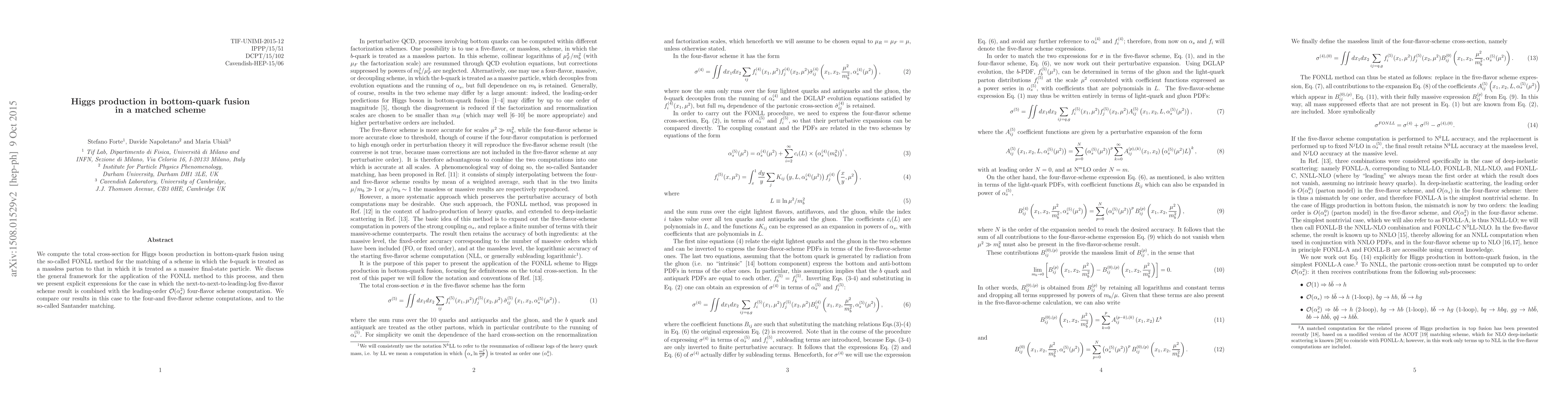 Researchers used the FONLL method to calculate Higgs boson production in bottom-quark fusion, comparing results with different scheme combinations.