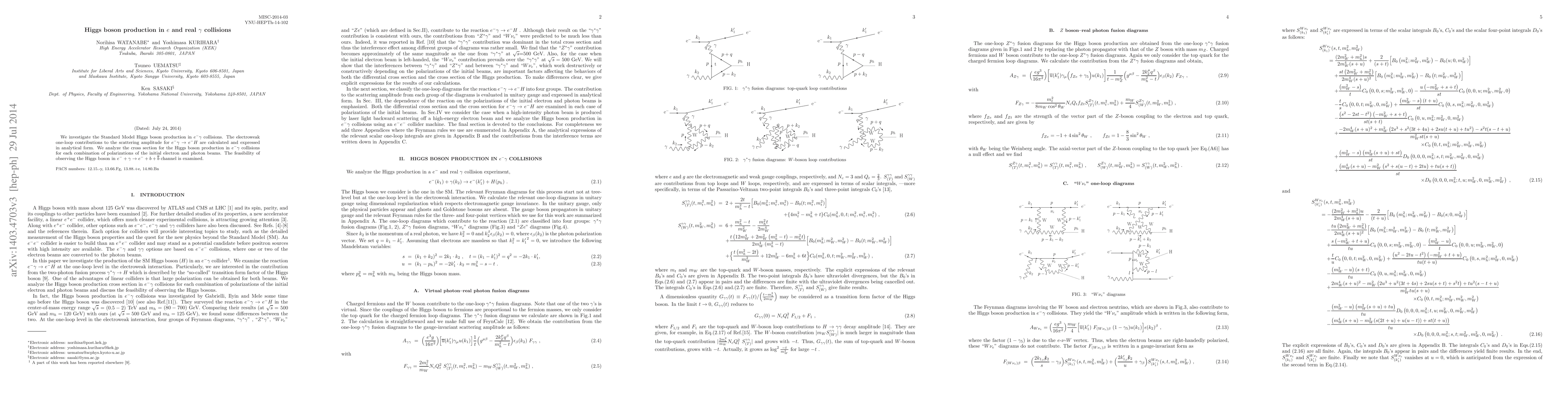 We investigate the Standard Model Higgs boson production in $e^-\gamma$ collision. The electroweak one-loop contributions to the scattering amplitude for $e^-\gamma\rightarrow e^-H$ are calculated and expressed in analytical form. We analyze the cross section for the Higgs production in $e^-\gamma$ collision for each combination of polarizations of the initial electron and photon beams. The feasibility of observing the Higgs boson in $e^-+\gamma\rightarrow e^-+b+{\overline b}$ channel is examined.