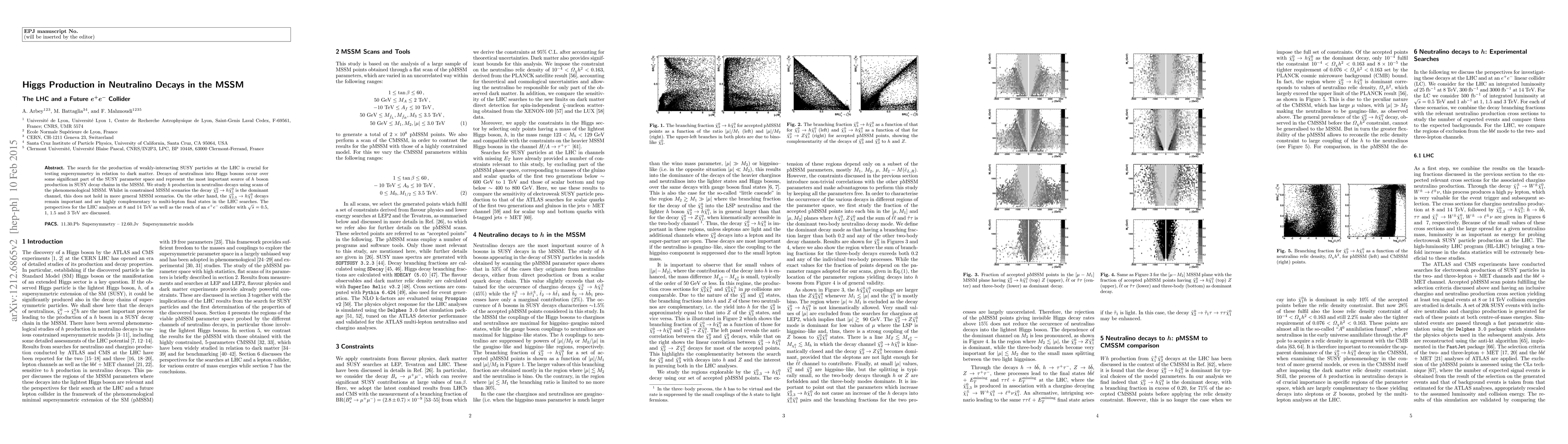This paper investigates Higgs boson production in neutralino decays within the Minimal Supersymmetric Standard Model (MSSM), focusing on its significance for LHC and future e+e- collider experiments. While chi^0_2 -> h chi^0_1 is dominant in constrained MSSM scenarios, chi^0_2,3 -> h chi^0_1 decays remain crucial and complementary to LHC searches, with detailed perspectives on both current and future collider capabilities.