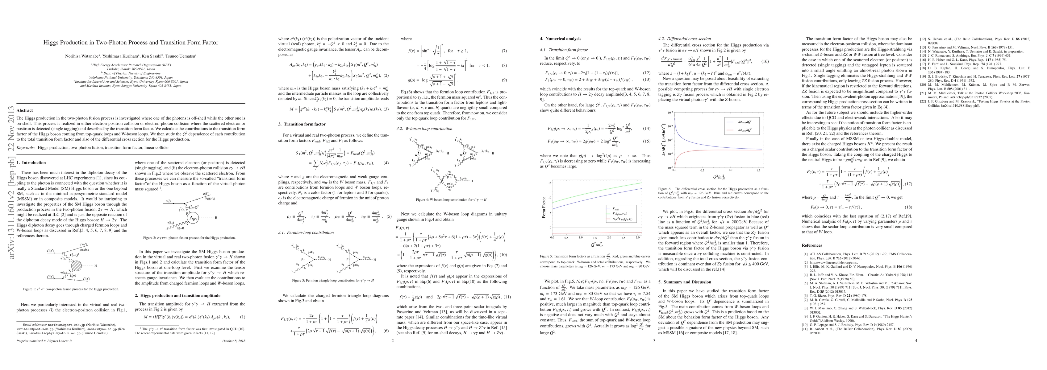 Researchers investigated Higgs boson production in two-photon collisions, focusing on top-quark and W-boson loops' impact on the transition form factor, revealing $Q^2$ dependence of each contribution.