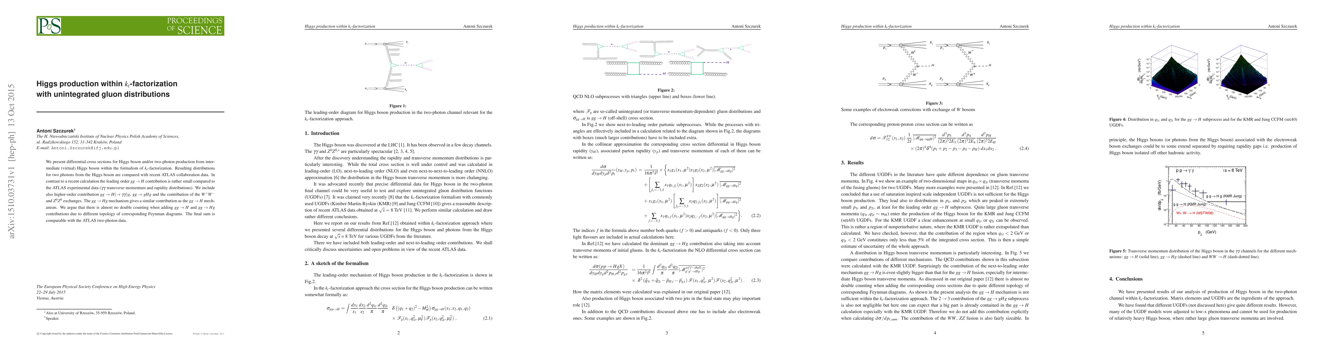 The research presents differential cross sections for Higgs boson and/or two-photon production from intermediate (virtual) Higgs boson within the k_t-factorization formalism.