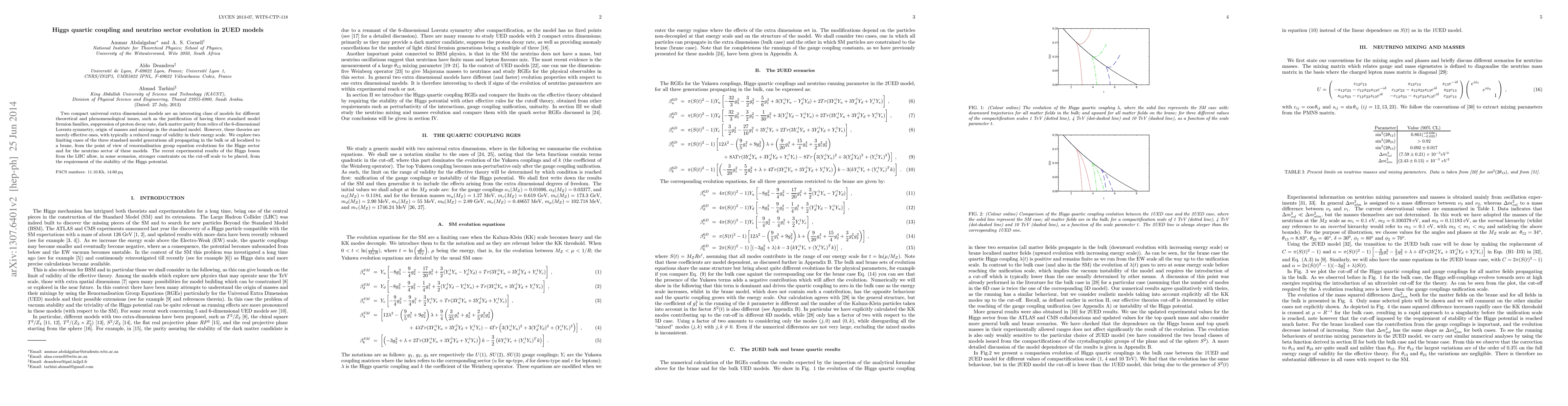 Two compact universal extra dimensional models are an interesting class of models for different theoretical and phenomenological issues, such as the justification of having three standard model fermion families, suppression of proton decay rate, dark matter parity from relics of the 6-dimensional Lorentz symmetry, origin of masses and mixings in the standard model. However, these theories are merely effective ones, with typically a reduced range of validity in their energy scale. We explore two limiting cases of the three standard model generations all propagating in the bulk or all localised to a brane, from the point of view of renormalisation group equation evolutions for the Higgs sector and for the neutrino sector of these models. The recent experimental results of the Higgs boson from the LHC allow, in some scenarios, stronger constraints on the cut-off scale to be placed, from the requirement of the stability of the Higgs potential.