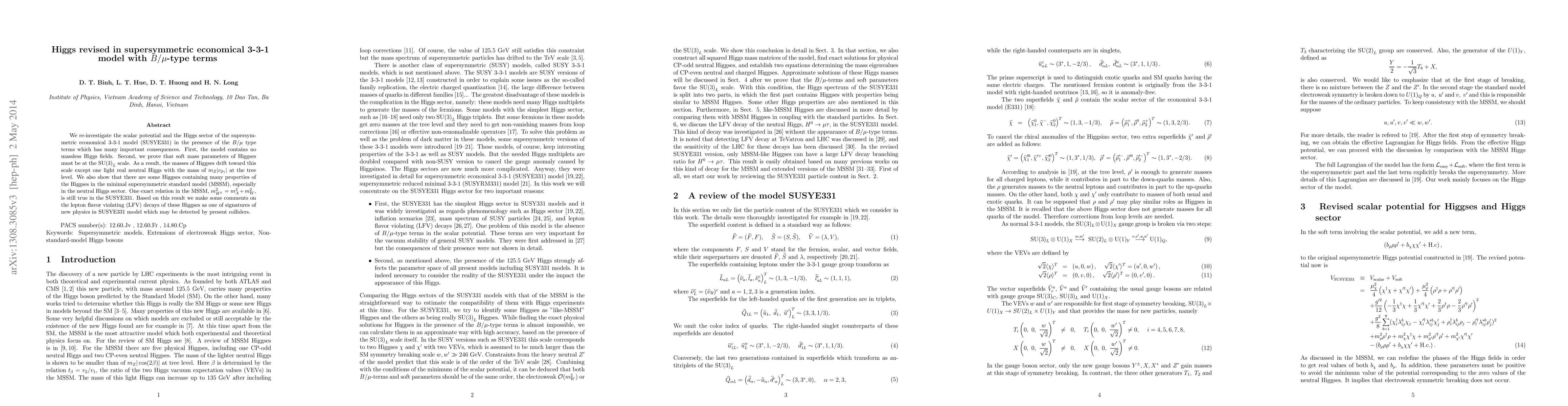 This paper revisits the Higgs sector in the supersymmetric economical 3-3-1 model with B/μ terms, finding no massless Higgs fields and proving that Higgs soft mass parameters align with the SU(3)_L scale. It highlights a light real neutral Higgs and discusses its implications for lepton flavor violating decays, suggesting potential detection by current colliders.