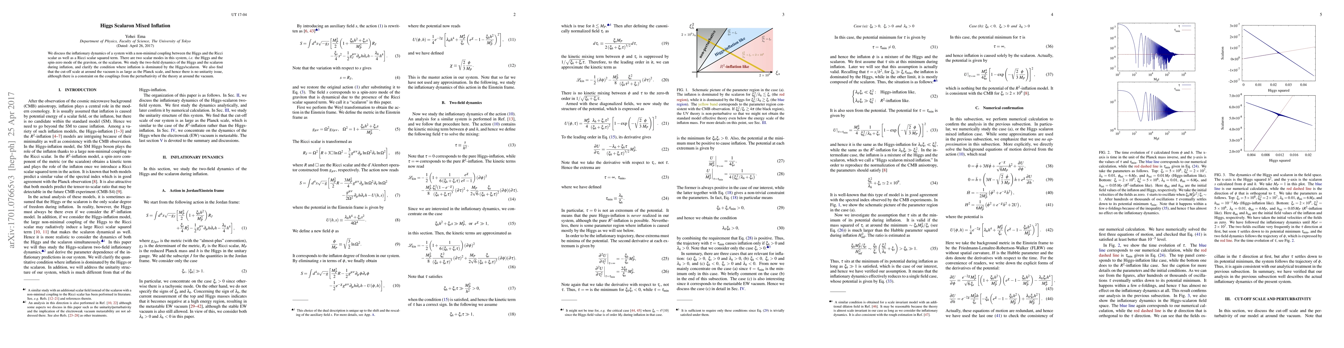 This paper explores the inflationary dynamics in a model where the Higgs field is non-minimally coupled to the Ricci scalar and a scalaron, revealing conditions under which inflation is dominated by the Higgs or scalaron. It concludes that the cut-off scale is near the Planck scale, avoiding unitarity issues but imposing perturbativity constraints on the couplings.