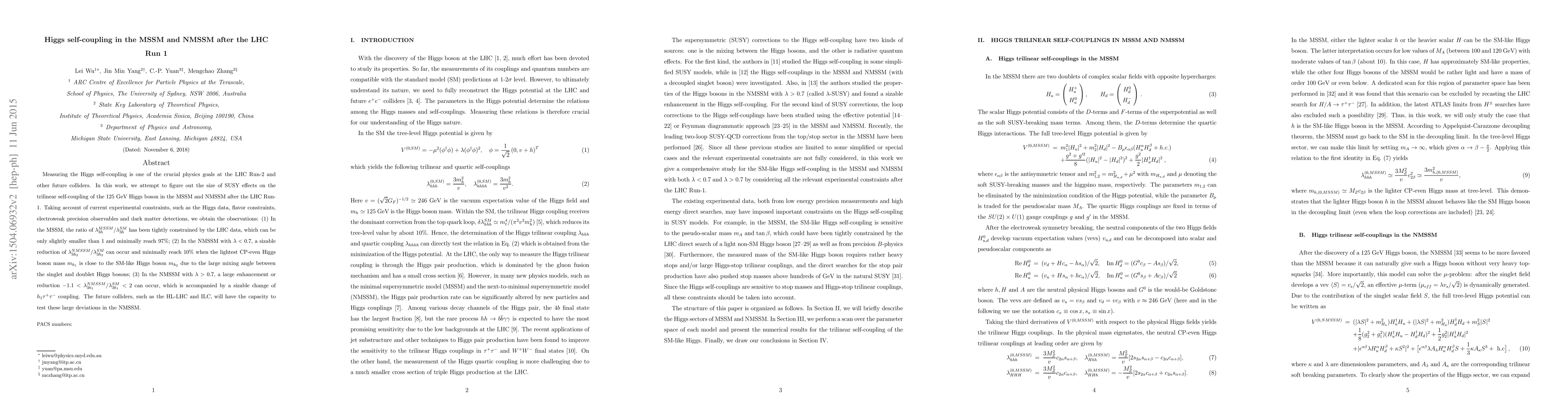 This paper investigates the impact of SUSY on the Higgs self-coupling in the MSSM and NMSSM frameworks post-LHC Run 1, revealing significant constraints in the MSSM and notable deviations in the NMSSM, especially for large singlet-doublet mixing angles. Future colliders may detect these deviations.