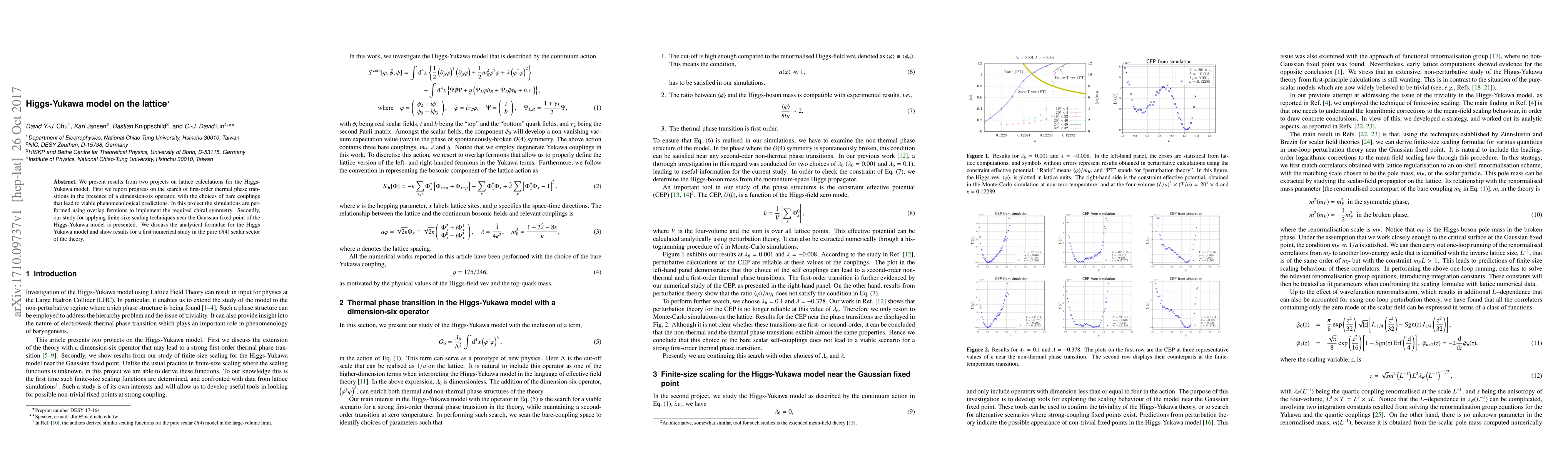Researchers used lattice calculations to study the Higgs-Yukawa model, finding potential thermal phase transitions and applying finite-size scaling techniques to better understand the theory's behavior.