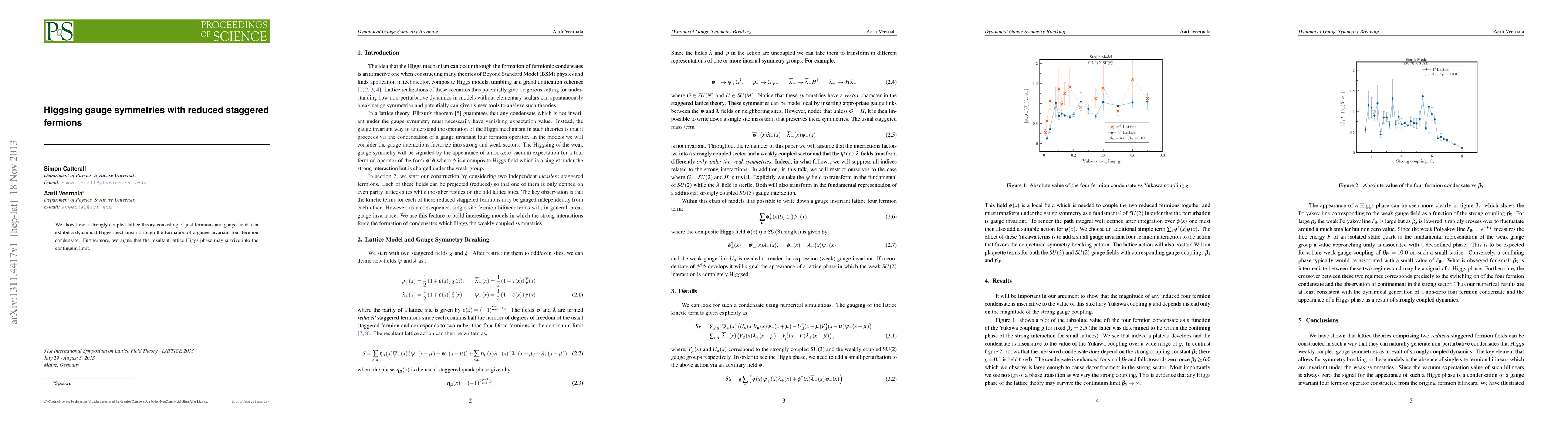 Researchers have discovered a way to create a Higgs-like phenomenon in a lattice theory using only fermions and gauge fields, without the need for additional particles. They argue that this 'lattice Higgs' phase could persist into the continuum limit.