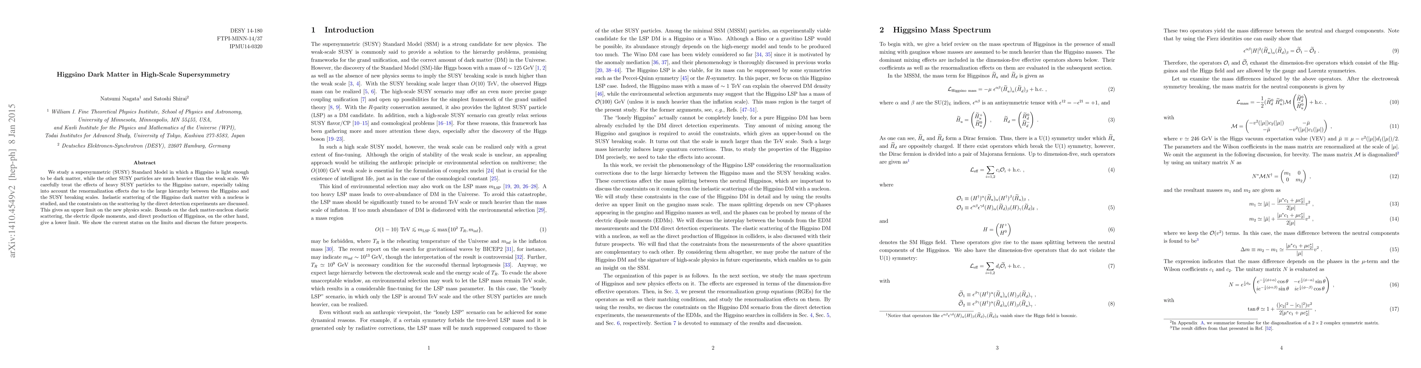 This paper explores the viability of Higgsino as dark matter in high-scale supersymmetry, focusing on its interactions and constraints from direct detection experiments and other phenomena. It establishes limits on the new physics scale through upper and lower bounds derived from various experimental constraints.