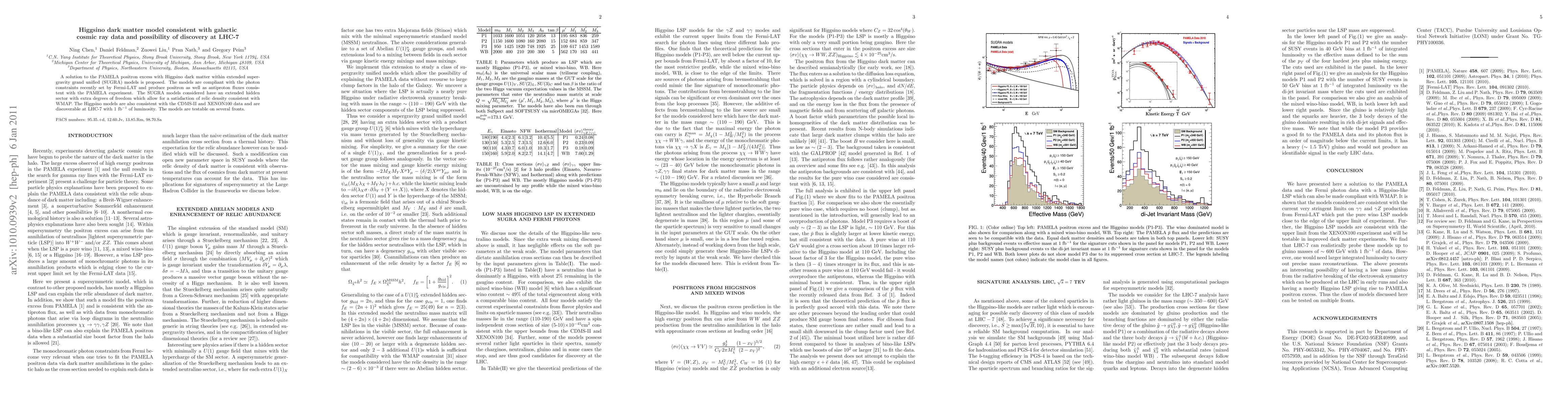 A solution to the PAMELA positron excess with Higgsino dark matter within extended supergravity grand unified (SUGRA) models is proposed. The models are compliant with the photon constraints recently set by Fermi-LAT and produce positron as well as antiproton fluxes consistent with the PAMELA experiment. The SUGRA models considered have an extended hidden sector with extra degrees of freedom which allow for a satisfaction of relic density consistent with WMAP. The Higgsino models are also consistent with the CDMS-II and XENON100 data and are discoverable at LHC-7 with 1 fb^(-1) of luminosity. The models are testable on several fronts.