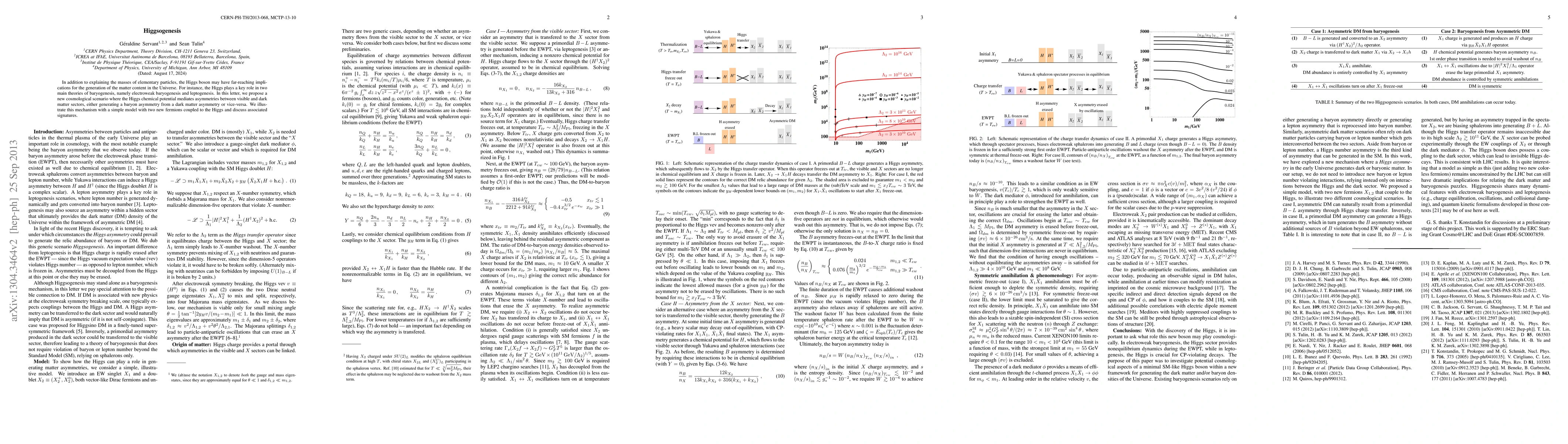 In addition to explaining the masses of elementary particles, the Higgs boson may have far-reaching implications for the generation of the matter content in the Universe. For instance, the Higgs plays a key role in two main theories of baryogenesis, namely electroweak baryogenesis and leptogenesis. In this letter, we propose a new cosmological scenario where the Higgs chemical potential mediates asymmetries between visible and dark matter sectors, either generating a baryon asymmetry from a dark matter asymmetry or vice-versa. We illustrate this mechanism with a simple model with two new fermions coupled to the Higgs and discuss associated signatures.