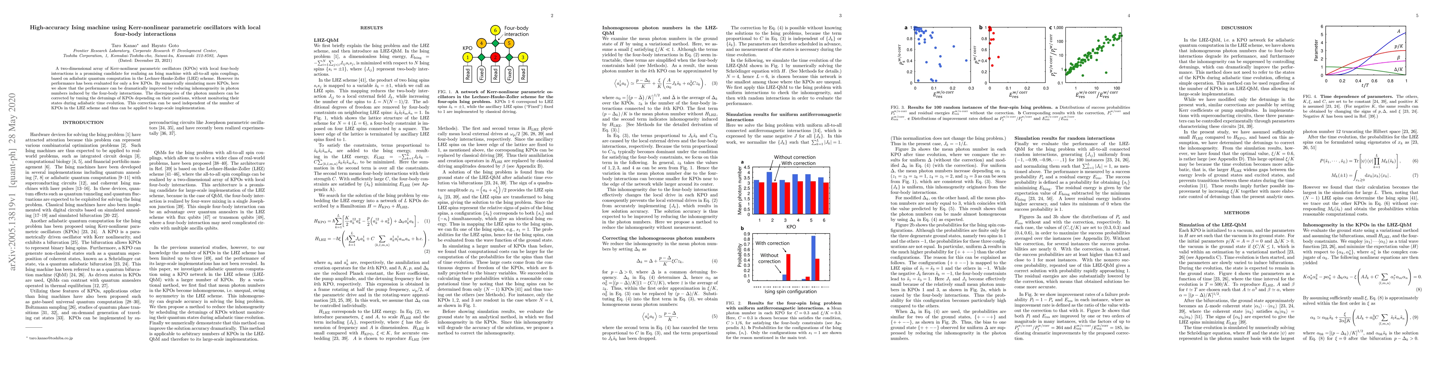 Researchers improved the performance of a 2D array of Kerr-nonlinear parametric oscillators with local four-body interactions for an Ising machine, correcting discrepancies in photon numbers through tuning detunings without monitoring states.