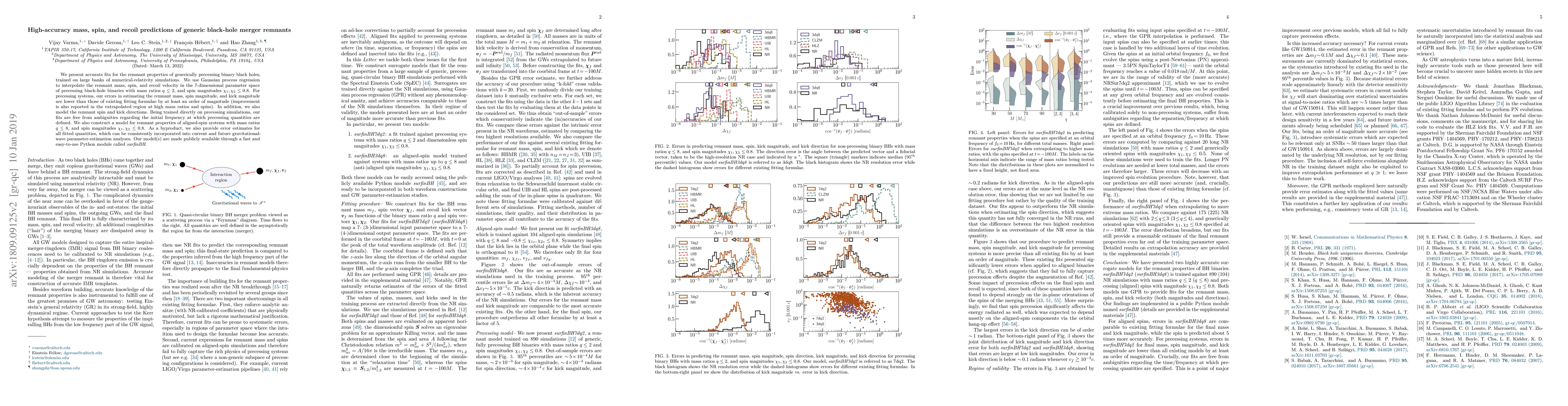 This paper presents highly accurate Gaussian process regression fits for predicting the mass, spin, and recoil of black-hole merger remnants, significantly outperforming existing methods. The models are trained on extensive numerical-relativity simulations and provide error estimates for use in gravitational-wave analyses, with a new tool, surfinBH, made available for easy implementation.