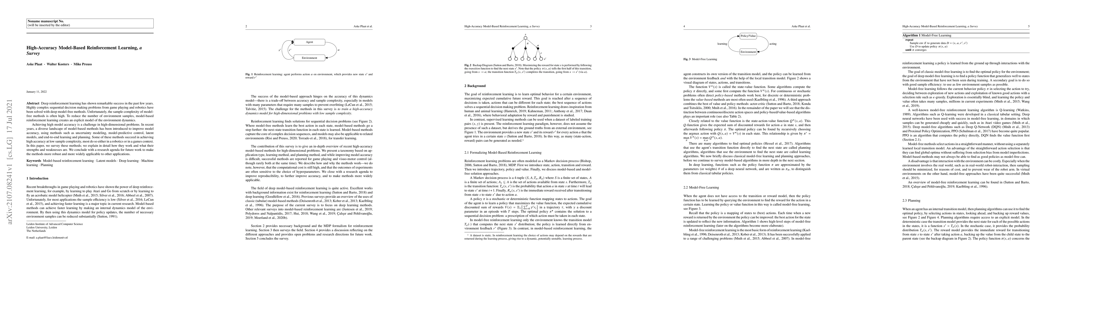 This paper surveys various high-accuracy model-based reinforcement learning methods aimed at reducing sample complexity by creating accurate environment models. It examines techniques like uncertainty modeling and model-predictive control, highlighting their strengths and weaknesses, and proposes a research agenda for future improvements.