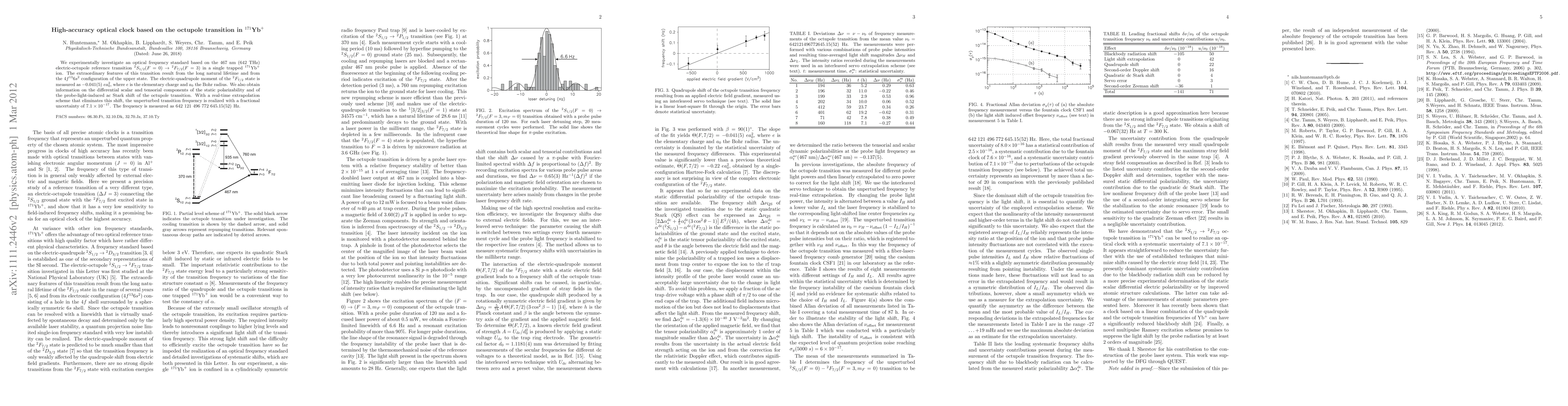 We experimentally investigate an optical frequency standard based on the 467 nm (642 THz) electric-octupole reference transition 2S1/2(F=0) -> F7/2(F=3) in a single trapped 171Yb+ ion. The extraordinary features of this transition result from the long natural lifetime and from the 4f136s2 configuration of the upper state. The electric quadrupole moment of the 2F7/2 state is measured as -0.041(5) e(a0)^2, where e is the elementary charge and a0 the Bohr radius. We also obtain information on the differential scalar and tensorial components of the static polarizability and of the probe light induced ac Stark shift of the octupole transition. With a real-time extrapolation scheme that eliminates this shift, the unperturbed transition frequency is realized with a fractional uncertainty of 7.1x10^(-17). The frequency is measured as 642 121 496 772 645.15(52) Hz.