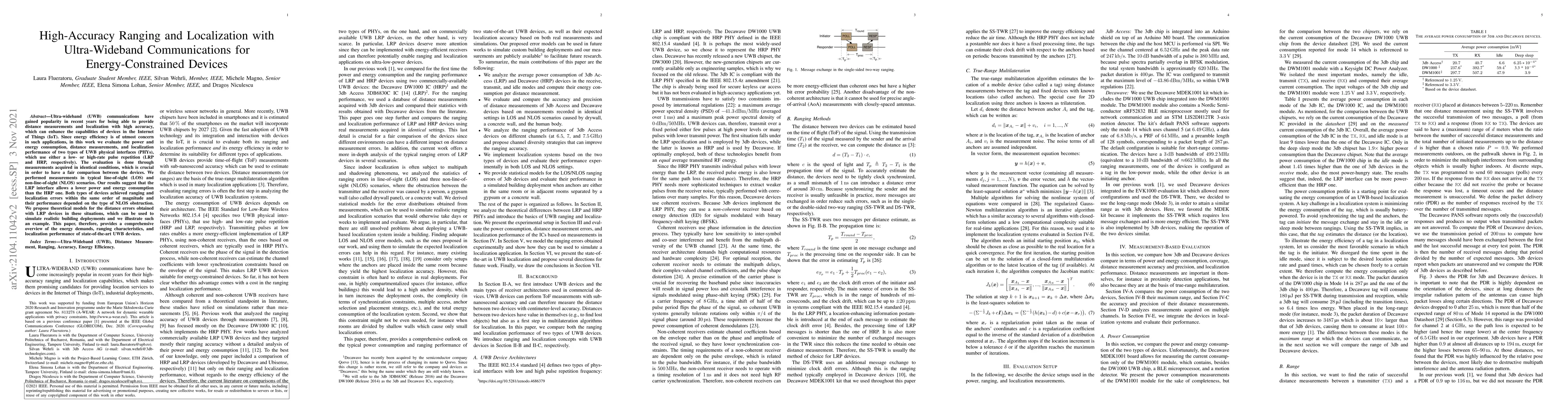 This paper evaluates the energy efficiency and performance of two types of ultra-wideband (UWB) physical interfaces for IoT devices, finding that low-rate pulse repetition (LRP) devices consume significantly less power and energy while maintaining high-accuracy ranging and localization compared to high-rate pulse repetition (HRP) devices. The study also proposes theoretical models for distance errors in line-of-sight and non-line-of-sight scenarios.