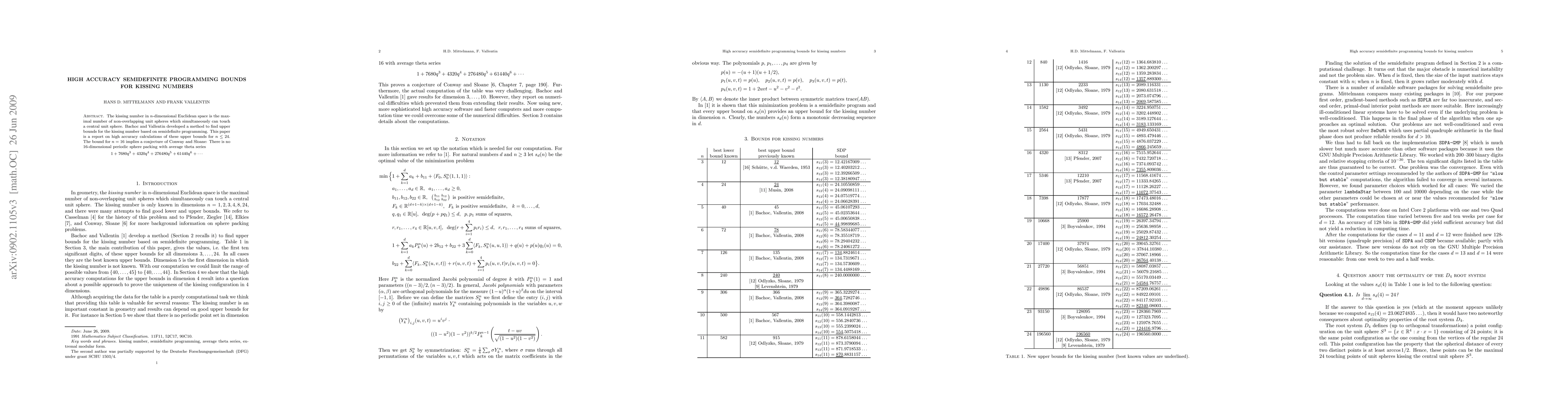 This paper reports high accuracy semidefinite programming bounds for kissing numbers in n-dimensional Euclidean space up to n=24, resolving a conjecture by Conway and Sloane regarding the non-existence of a specific 16-dimensional periodic point set.