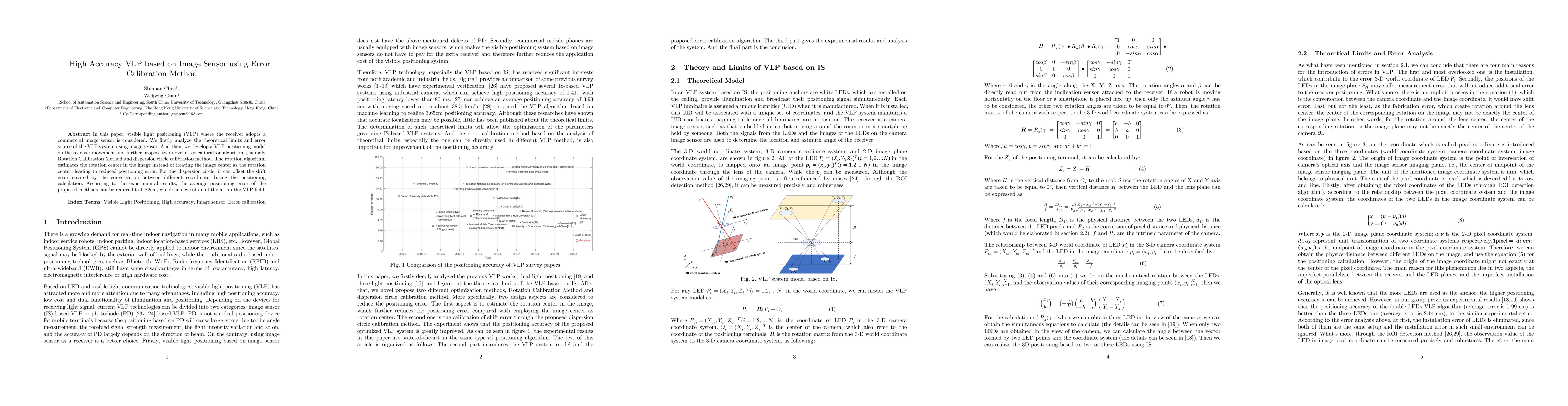 Researchers developed a high-accuracy visual light positioning (VLP) system using image sensors with two novel error calibration methods that reduce positioning errors to 0.82cm, achieving state-of-the-art results in the field.