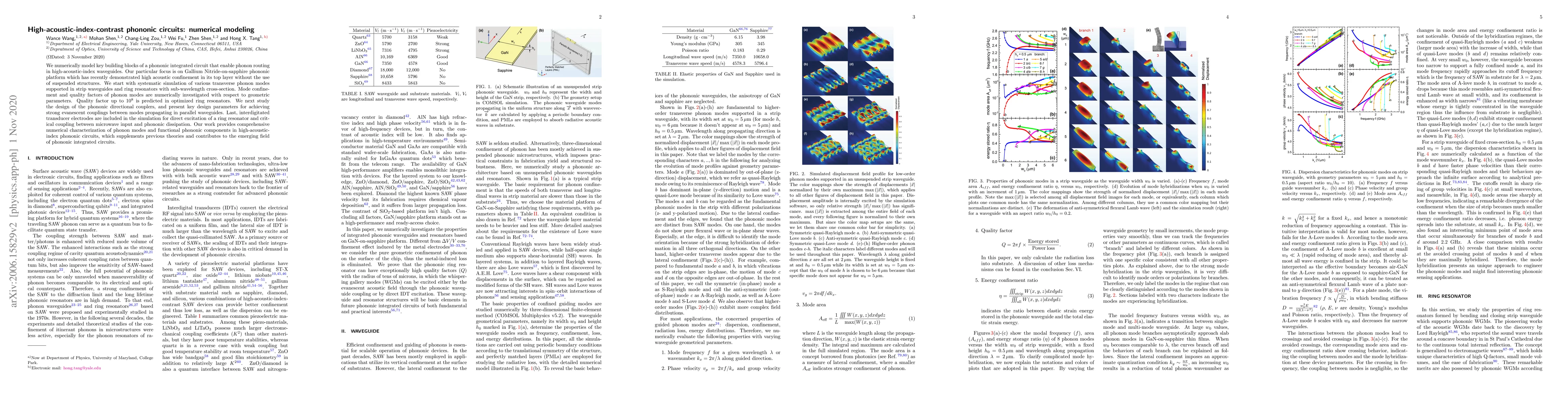 This paper numerically models phononic circuits using Gallium Nitride on sapphire, focusing on high-acoustic-index waveguides. It investigates phonon modes, quality factors, and designs phononic directional couplers and transducers for efficient phonon routing and coupling.