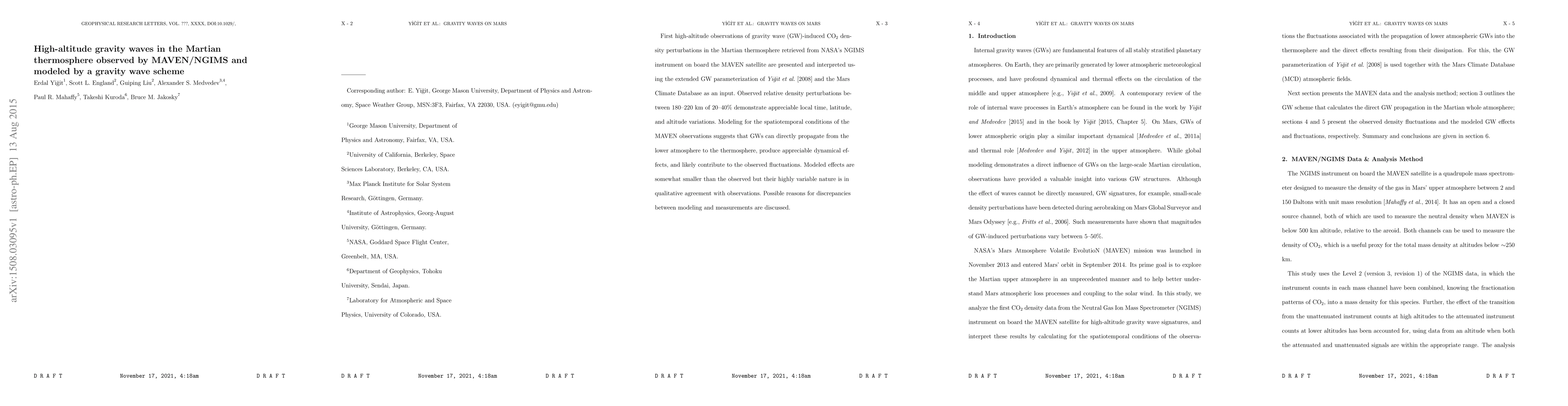 This paper reports the first high-altitude observations of Martian thermosphere gravity wave (GW)-induced CO$_2$ density perturbations from MAVEN/NGIMS, showing significant local time, latitude, and altitude variations. Modeling using an extended GW parameterization and Mars Climate Database suggests GWs propagate from the lower atmosphere to the thermosphere, producing notable dynamical effects and fluctuations.