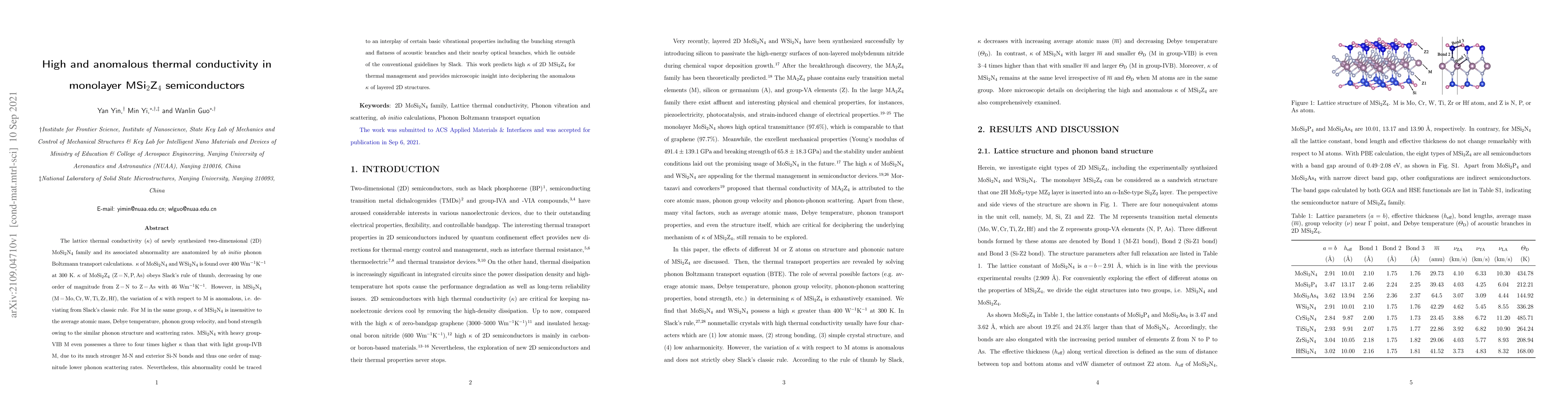 This study reveals high and anomalous thermal conductivity in monolayer MSi$_2$Z$_4$ semiconductors, with MoSi$_2$N$_4$ and WSi$_2$N$_4$ exhibiting extraordinary $\kappa$ over 400 Wm$^{-1}$K$^{-1}$ at 300 K. MSi$_2$N$_4$ shows deviations from Slack's rule, particularly for heavy group-VIB metals, due to stronger M-N and Si-N bonds leading to lower phonon scattering rates.
