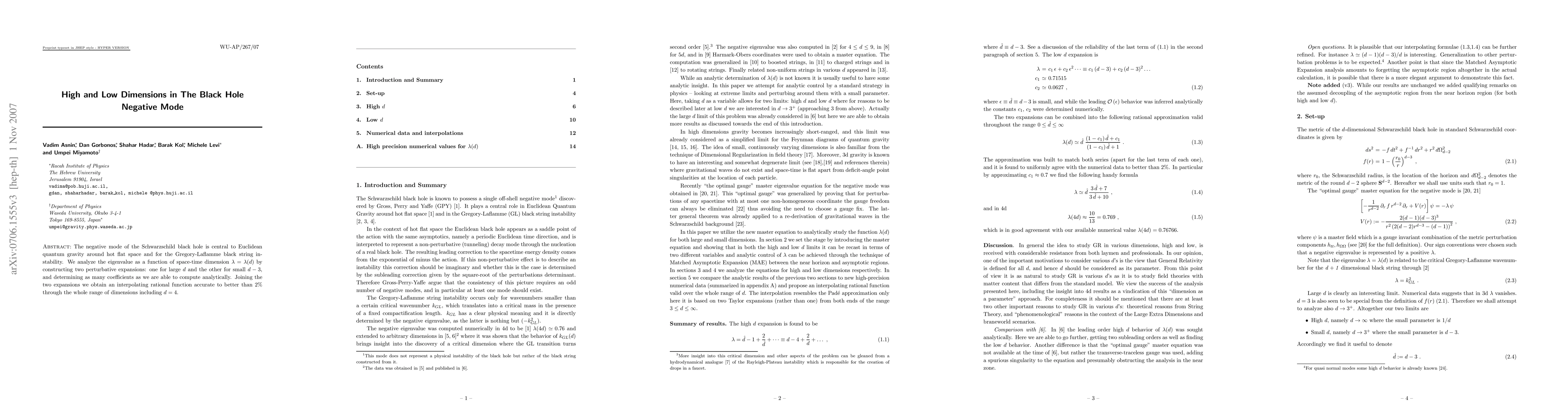 The negative mode of the Schwarzschild black hole is central to Euclidean quantum gravity around hot flat space and for the Gregory-Laflamme black string instability. We analyze the eigenvalue as a function of space-time dimension by constructing two perturbative expansions: one for large d and the other for small d-3, and determining as many coefficients as we are able to compute analytically. Joining the two expansions we obtain an interpolating rational function accurate to better than 2% through the whole range of dimensions including d=4.