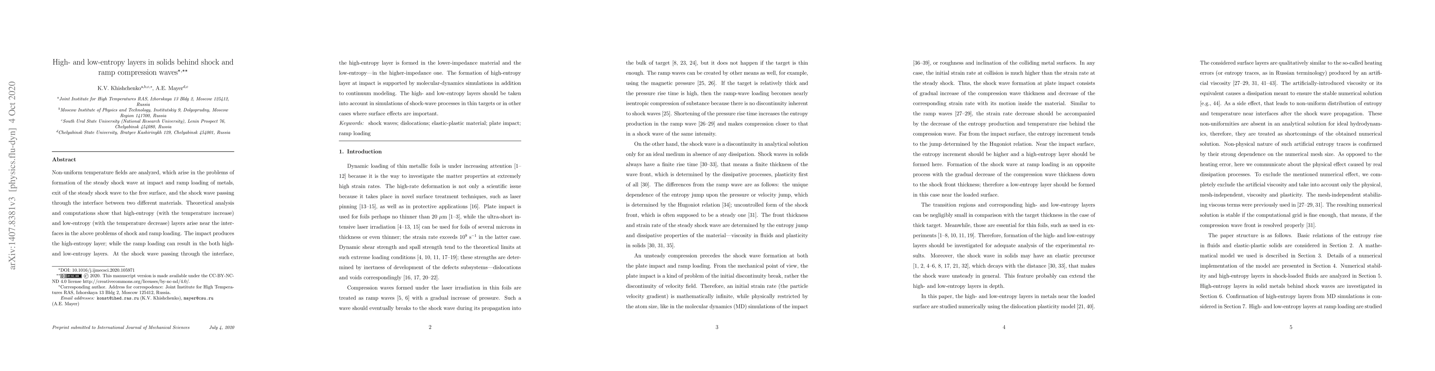 This paper investigates the formation of high- and low-entropy layers in solids subjected to shock and ramp compression waves, revealing that these layers arise due to non-uniform temperature fields at interfaces. The high-entropy layer forms during impact, while ramp loading can produce both high- and low-entropy layers, depending on material impedance.