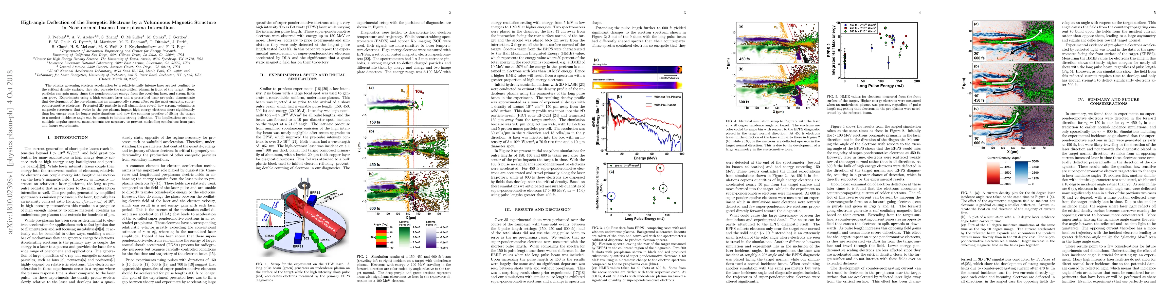 This paper investigates how voluminous magnetic structures in pre-plasma affect energetic electron deflection during intense laser-plasma interactions. Experiments and simulations show that high-angle deflection of super-ponderomotive electrons is significantly influenced by these magnetic structures, especially with longer laser pulses and modest target incidence angles.