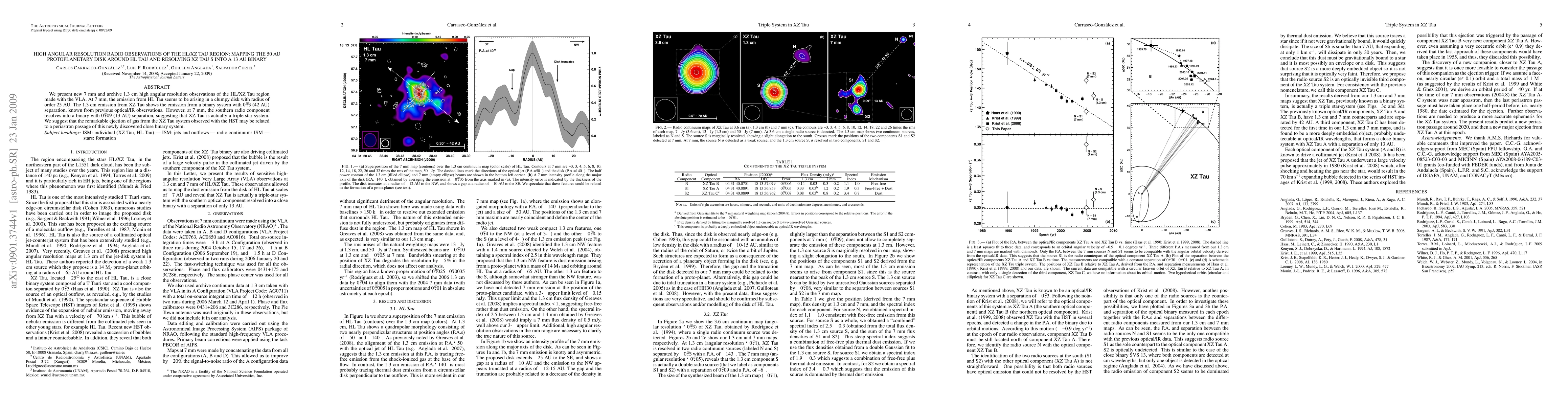 This paper uses high angular resolution radio observations to reveal the structure of the HL Tau and XZ Tau regions, showing HL Tau's disk is clumpy at 7 mm and identifying XZ Tau as a triple star system with a close binary at 7 mm, suggesting a possible link to gas ejection observed via HST.