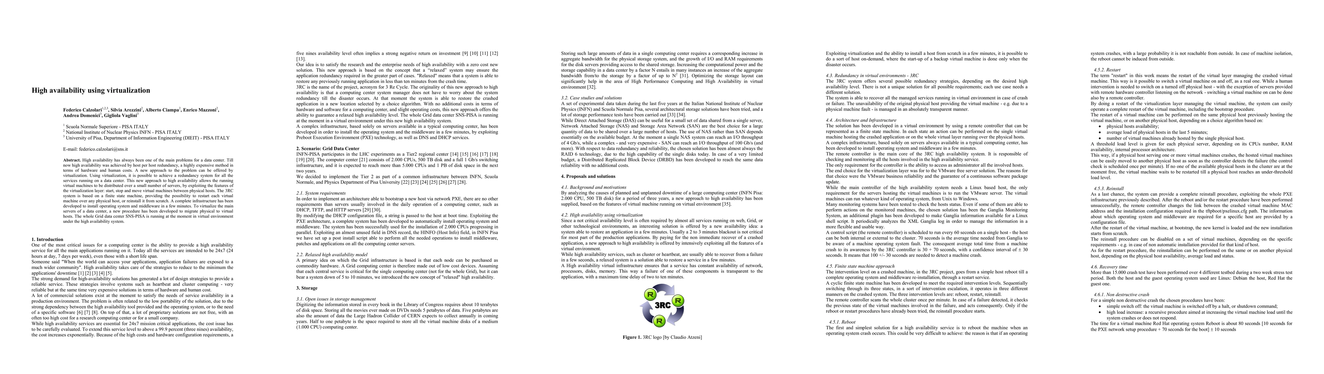 Researchers developed a high availability system using virtualization, allowing for efficient distribution of services across a few physical servers. This approach enables fast migration to virtual hosts and reduces costs compared to traditional host-by-host redundancy methods.