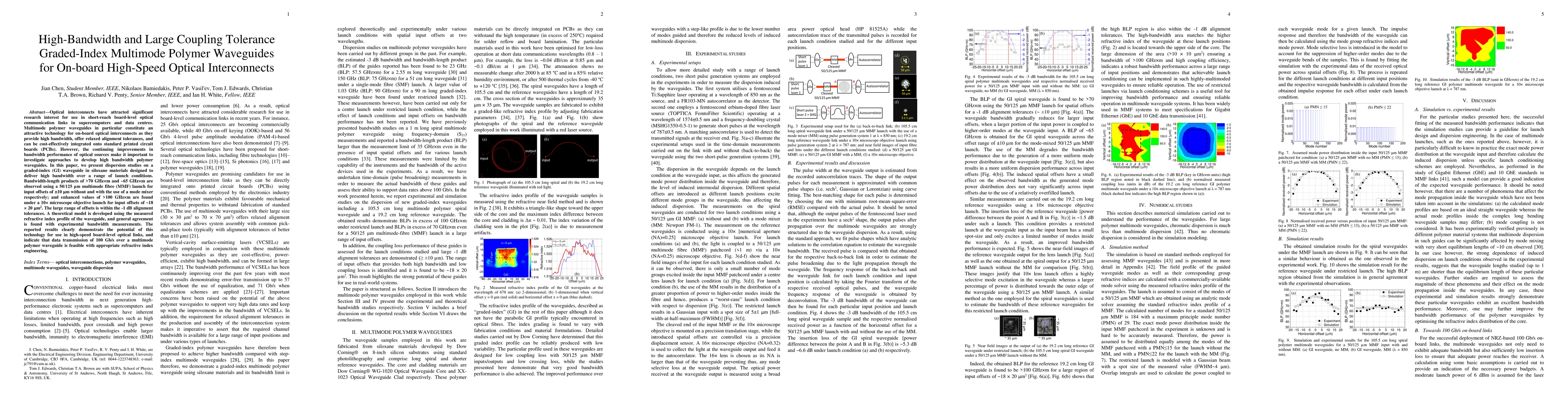Researchers developed high-bandwidth multimode polymer waveguides for on-board optical interconnects, achieving bandwidth-length products of >100 GHzxm, making 100 Gb/s data transmission feasible.