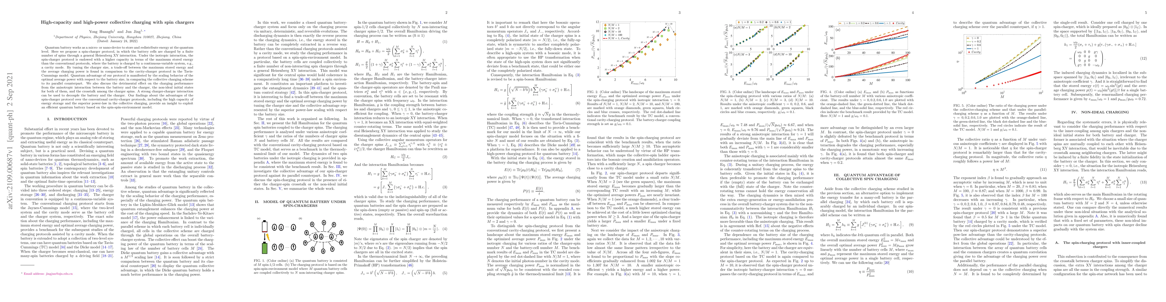 Researchers propose a spin-charger protocol for high-capacity energy storage, outperforming conventional protocols in terms of stored energy, with optimal charging power scaling with battery size.