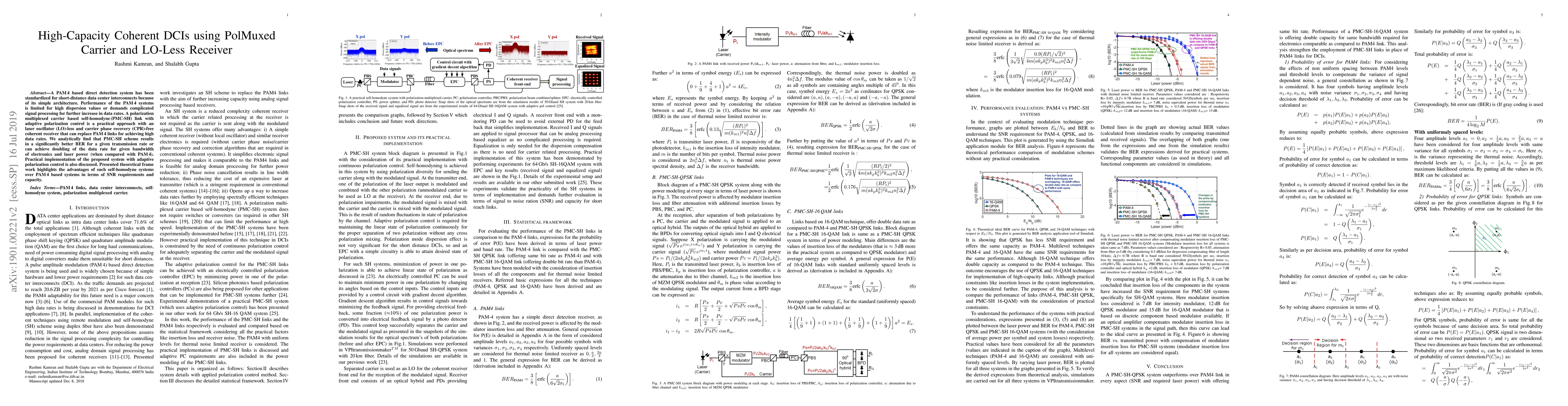 This paper proposes a polarization multiplexed carrier-based self-homodyne (PMC-SH) link for high-capacity data center interconnects, demonstrating significant improvements in bit error rate (BER) and data rate compared to PAM4 systems, with an LO-less and carrier phase recovery-free coherent receiver. The theoretical framework shows PMC-SH's advantages in signal-to-noise ratio (SNR) requirements and capacity.