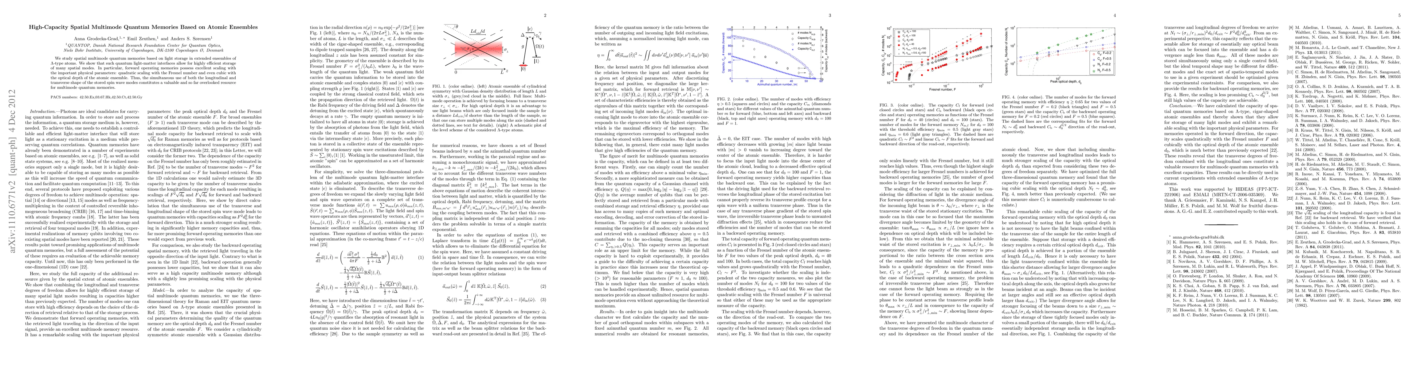 This paper presents a highly efficient spatial multimode quantum memory system based on extended ensembles of Lambda-type atoms, demonstrating quadratic and cubic scaling with key physical parameters. The study highlights the potential of utilizing both longitudinal and transverse spin wave modes for improved memory capacity.