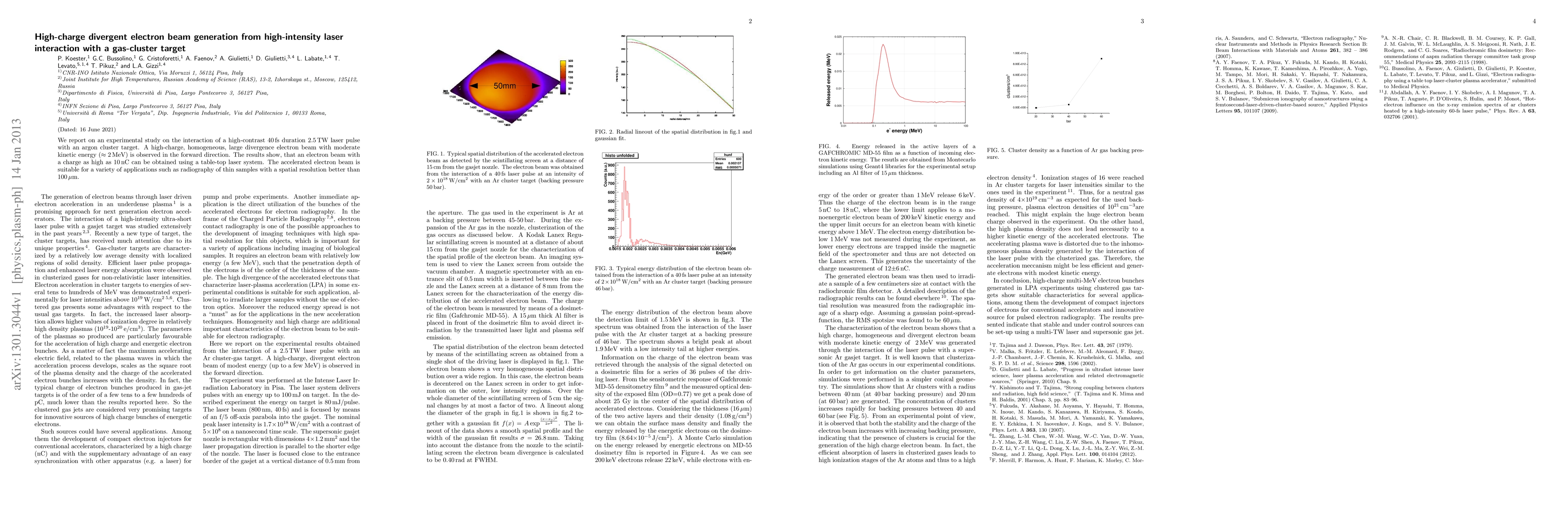 This study demonstrates the generation of a high-charge, large divergence electron beam via a high-intensity laser interacting with an argon cluster target, achieving up to 10 nC charge and ~2 MeV kinetic energy, suitable for high-resolution radiography.