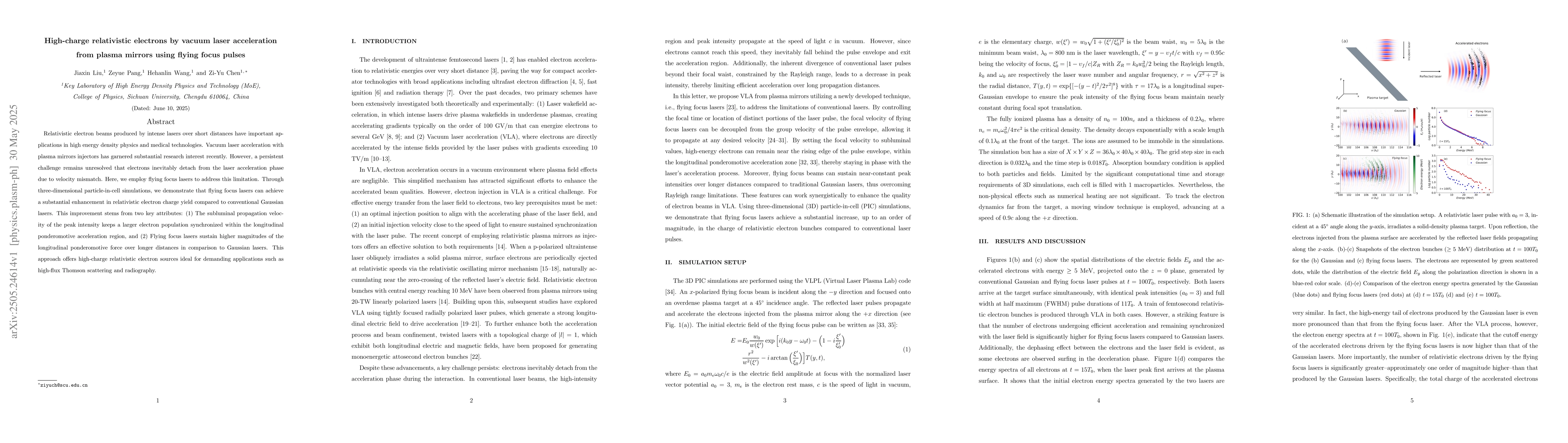 Researchers developed a method to create high-charge relativistic electrons using vacuum laser acceleration with flying focus pulses, overcoming velocity mismatch issues and improving electron charge yield compared to traditional lasers.